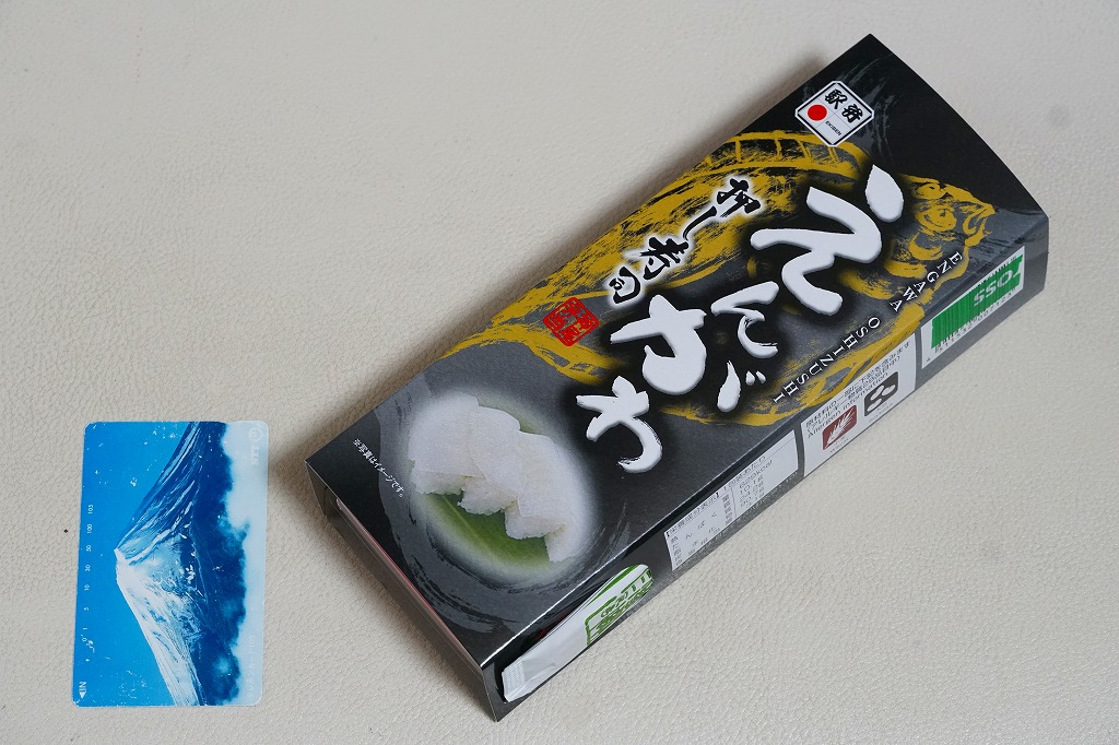 通常版のパッケージに、新之助のシール2枚を貼る。中身や値段は通常版と変わらない。食べてみると、米にくっつくような粘り気を感じた。酢飯にしてエンガワを貼ると、以前のおいしさと変わらない、うまくもまずくもならない印象。