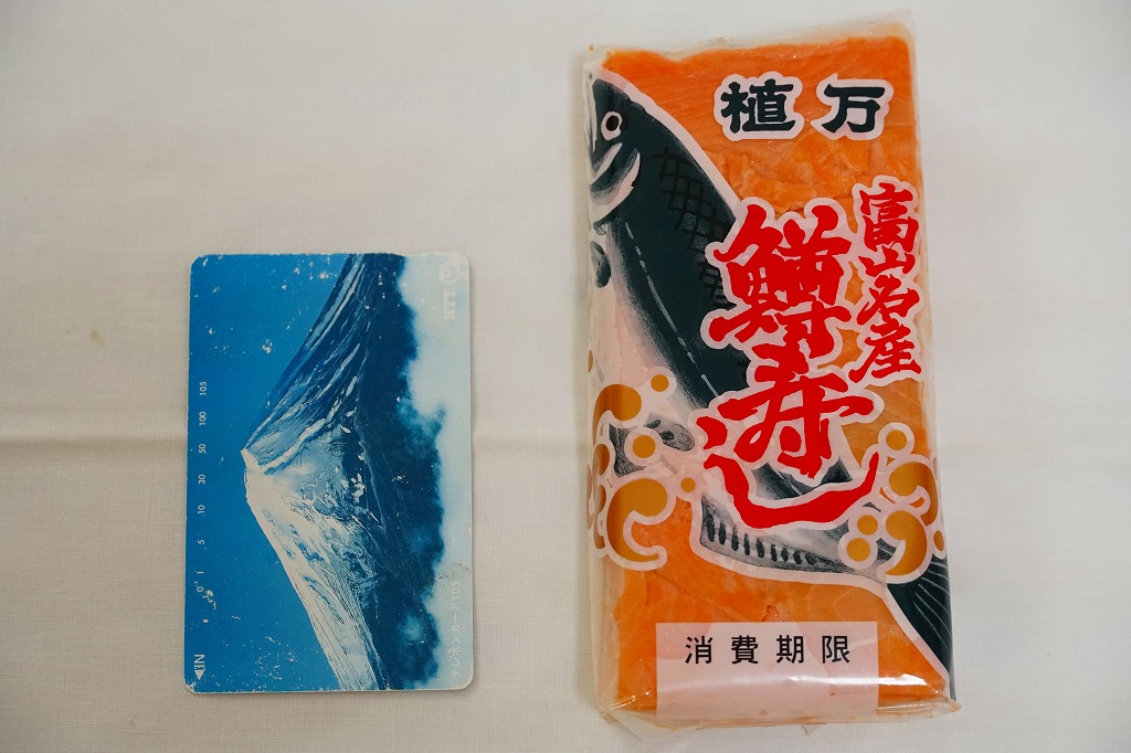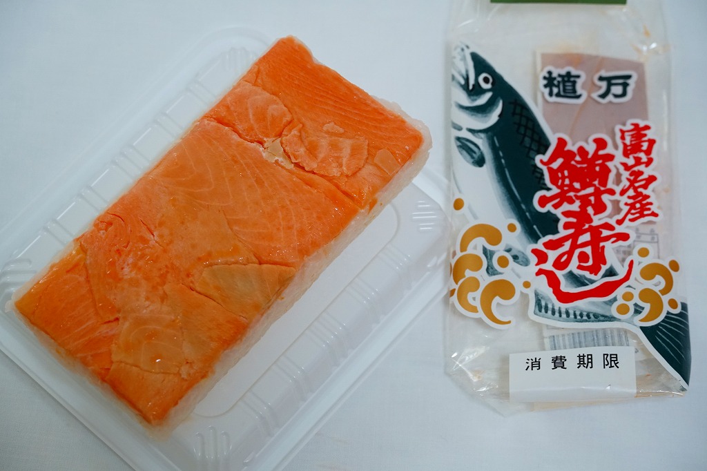 上記の商品「富山名産鱒寿し」の、2015(平成27)年時点での姿。価格と食品表示を除き、上記の2025年のものと変わらない。当時のほうがマスの身に脂が乗り、味がジューシーに思えた。