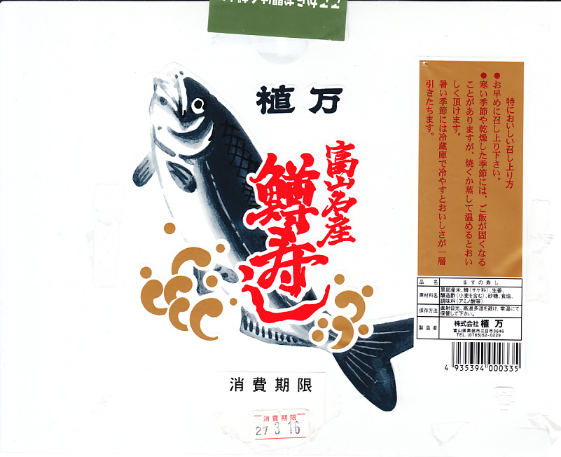富山名物ますのすしはかつて市内を流れる神通川のサクラマスを使っていたが、他の多くの地場産名物と同様、需要の拡大と供給の縮小により、製法や調味に伝統を残しながら、原料は北海道産や海外産のマス類を使っているそうな。近年は食品表示が厳しくなる一方なので、原材料名には「鱒(サケ類)」などと書かなければならない模様。