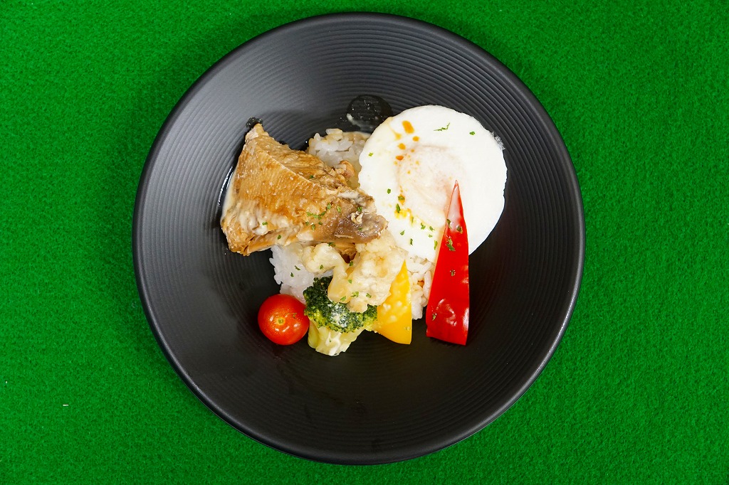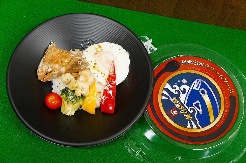 2014(平成26)年12月29日の発売。おそらく事実上、2015年1月の京王百貨店の駅弁大会で実演販売するために生まれたのだろう、掛紙代わりのシールには大会の正式な名称が記される。駅弁の容器では他に見たことがない平皿に、御飯をこんもりと小さく盛り、クリームソースをかけたブリかま煮焼、目玉焼き風オムレツ、ブロッコリー、カリフラワー、プチトマト、パプリカを被せる。