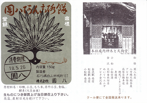 上記の鉄道銘菓「圓八あんころ餅」を、東京のデパートの駅弁催事で買ったもの。包装も中身も味も同じで、4か月間で値上げされたのか、こちらが20円安かった。この日本最大の駅弁大会では、毎年これが輸送販売されていたはずが、この年までその存在に気付かなかった。