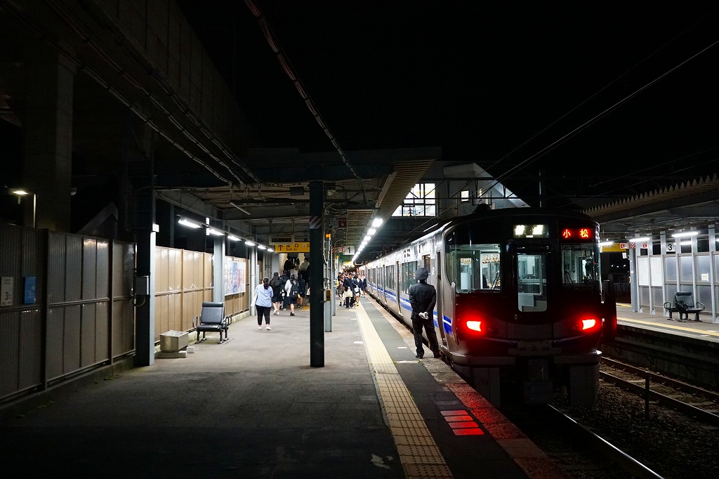 金沢駅から普通列車で3駅10分。白山市は2005(平成17)年2月に松任市と2町5村が合併してできた、人口約11万人の市。1970(昭和45)年から市制を敷いた松任市は、金沢のベッドタウンでもある工業都市であった。駅弁はないが、明治時代から駅売りされるあんころもちが有名。1898(明治31)年4月1日開業、石川県白山市相木町。