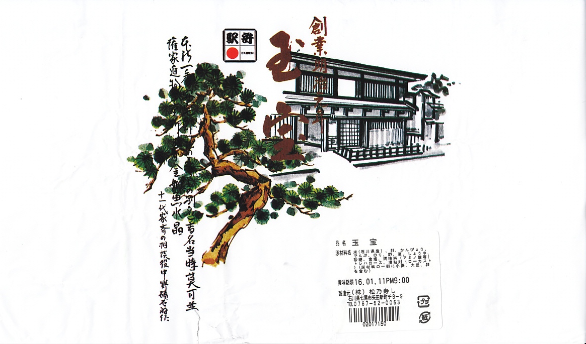 七尾駅での駅弁の販売は、2016(平成28)年5月の駅売店の大手コンビニ「セブンイレブン」化により終わった模様。玉宝も駅から消えたようだが、調製元の寿司屋で買うことができるらしい。