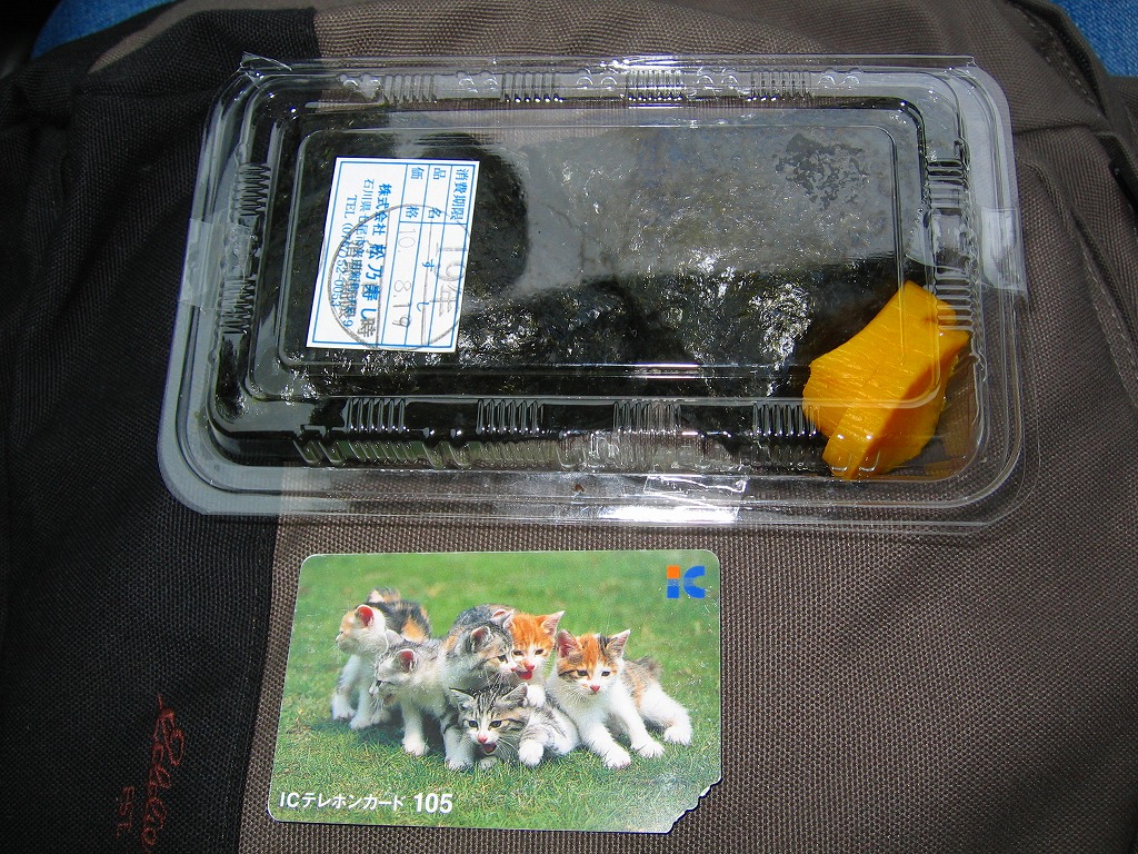 七尾の駅弁屋がつくり、駅売店で売られるおにぎり。しかしなぜか品名に「すし」とあった。中身は梅干おにぎり、梅干ゆかりおにぎり、タクアン2切れ。いずれも苦手な食材なので、泣きながら食べた。調製元の商品が七尾駅で売られなくなったので、これも駅での販売はもうないのではないかと思う。