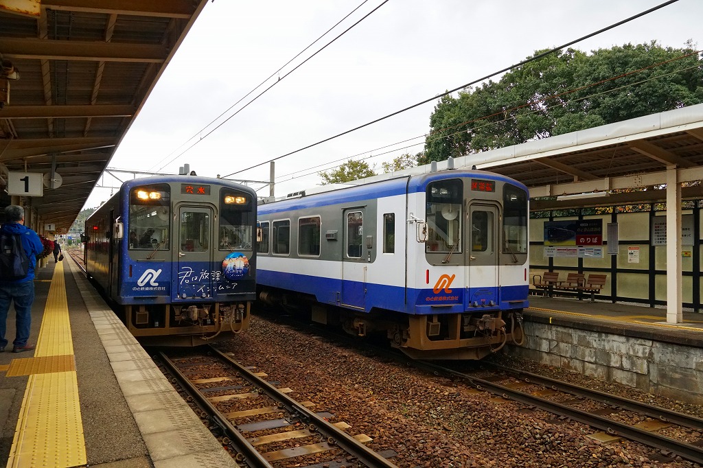 訪問時の七尾駅は、コンクリート造一部二階建の古い駅舎と対照的に、舗装が新しく歩道は白くまぶしい駅前ロータリーが完備されていた。その向こう側にはこの車社会の御時世に駅前再開発ビルを2棟も建ててしまっており、十年後に廃墟にならないか心配だと思う。