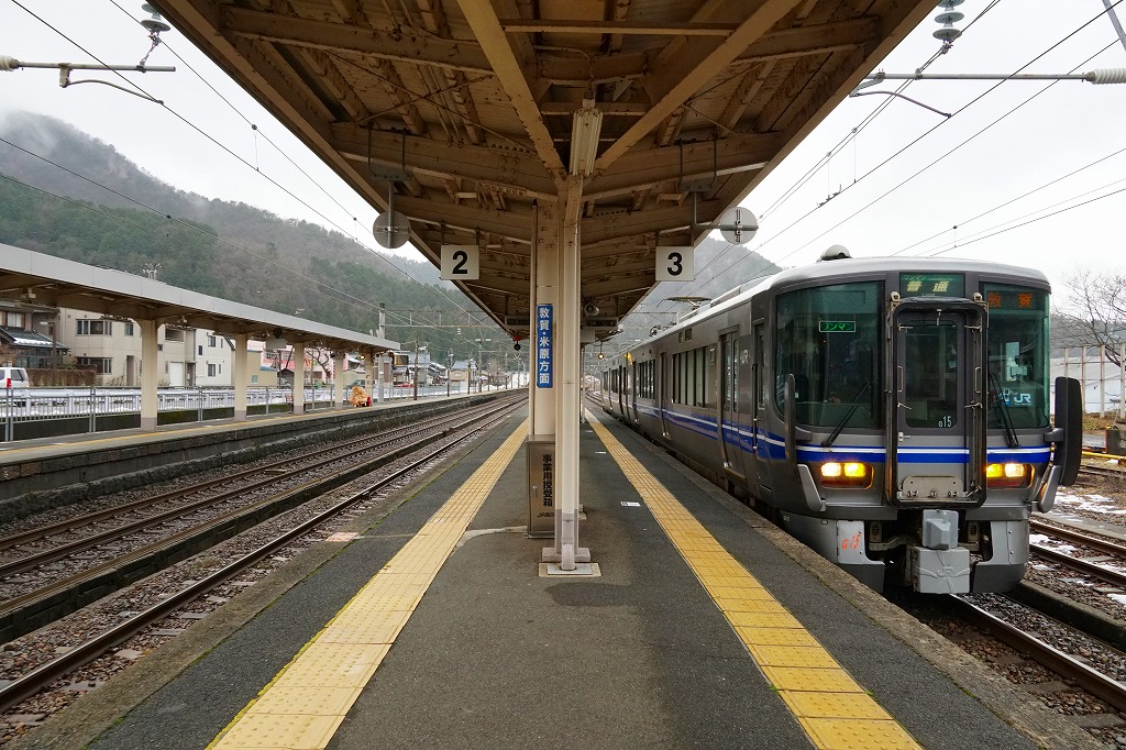 福井駅から普通列車で40分前後。南越前町は2005年1月に今庄町と南条町と河野村が合併してできた、人口約1万人の宿場町。今庄は江戸時代まで、現在の関西と北陸を隔てる峠道が3本も集まり、陸上交通の要衝として栄えた。明治時代に鉄道が開通すると、山中峠越えの機関車を付けたり外す鉄道の町となり、職員や旅客で賑わい栄え、駅弁が売られ、立ち食いそばが親しまれた。1962年6月の北陸トンネルの開通で、今は静かな山間の集落。1896(明治29)年7月15日開業、福井県南条郡南越前町今庄。