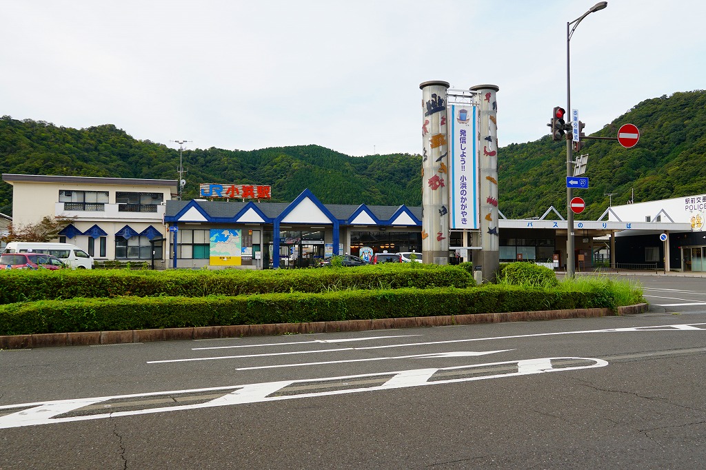敦賀駅から小浜線の普通列車で1時間強。小浜市は福井県南西部の嶺南地方で若狭湾に面した、人口約3万人の城下町。古代から江戸時代まで、良港を擁する港町と、京へ至る街道との結節で、地域の拠点であった。駅弁は駅の開業時から売られ、1990年代に撤退したが、以後も小浜駅の駅弁と紹介される商品が時々出現する。1918(大正7)年11月10日開業、福井県小浜市駅前町。