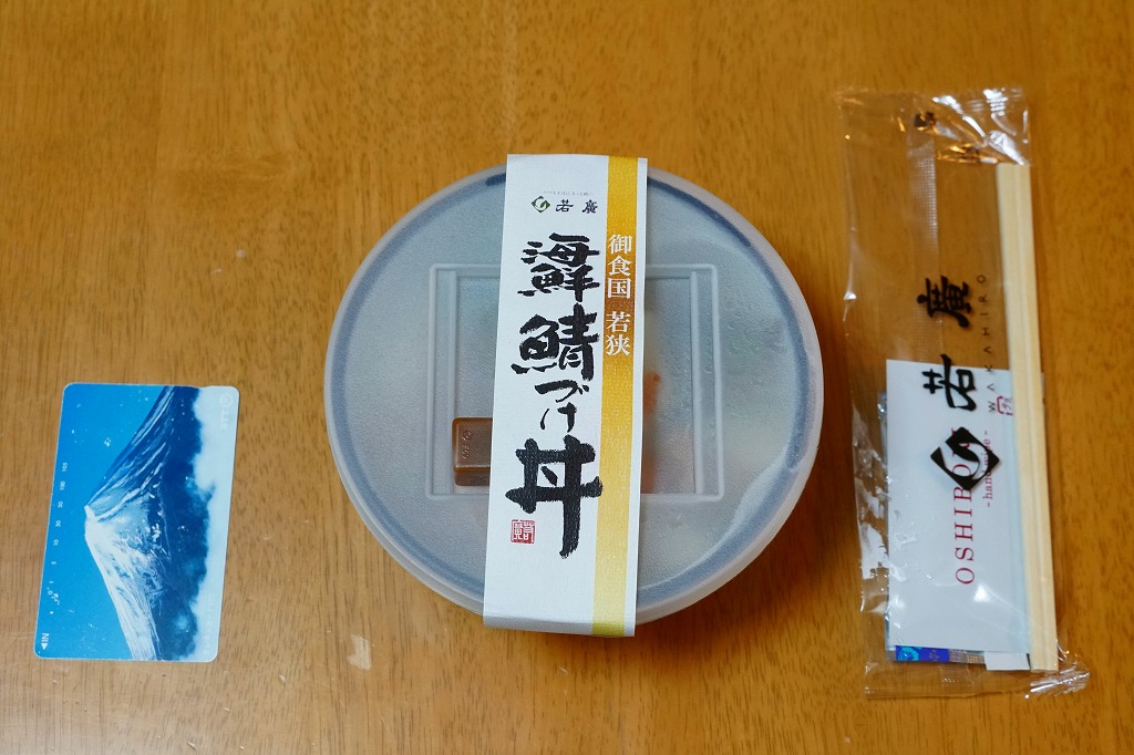 2021(令和3)年1月の京王百貨店の駅弁大会で実演販売。上記の商品「御食国若狭海鮮鯖づけ丼」について、京王百貨店の駅弁大会限定で、その名を記した特製どんぶりに入れて販売した。2020年の岡山駅「岡山名物デミカツ丼」、2019年の金沢駅「蟹のドリア」、2018年の水戸駅「常陸牛山椒風味カルビ弁当」、2017年の鳥取駅「山陰鳥取かにめし」、2016年の米子駅「海の宝箱丼」、2015年の名古屋駅「抹茶ひつまぶし日本一弁当」と同じ。ベースの商品が人気だったためか、毎日早くから完売していて、買いにくい商品だった。