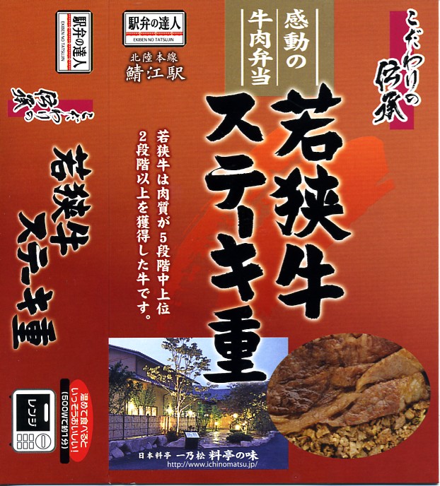2007(平成19)年の秋頃に催事場で現れた、鯖江駅弁を名乗るおそらく史上初のお弁当。コンビニ軽食弁当並みに小柄な容器に透明なふたをして、商品名や中身と調製元の写真に催事屋製「駅弁の達人」マークや、「こだわり」「感動の」などの煽り文句を付けたボール紙の枠にはめる。