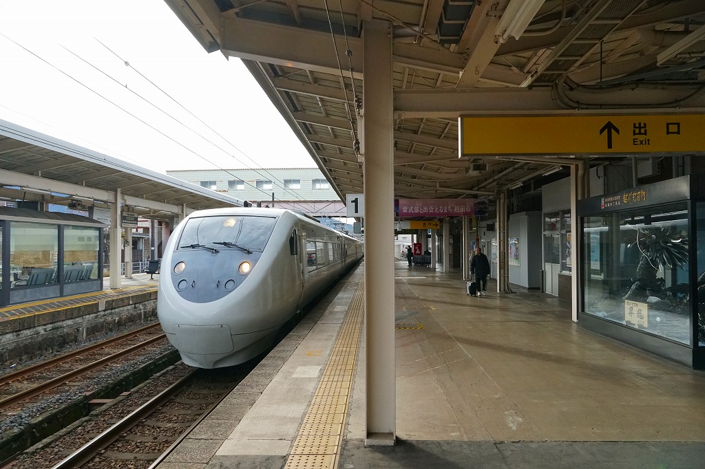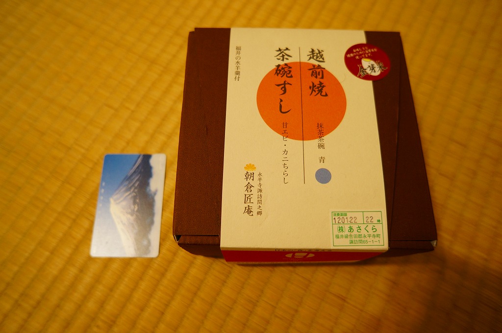 東京駅から北陸新幹線「はくたか」で3時間40分。北陸新幹線の敦賀駅までの延伸開業により、福井駅と敦賀駅との間で、既存の武生駅や鯖江駅から小山を隔てた東側に、道の駅と新幹線の駅ができた。駅弁はないが、道の駅に駅弁のような弁当があり、福井駅でも同じものを見かけた。2024(令和6)年3月16日開業、福井県越前市大屋町。