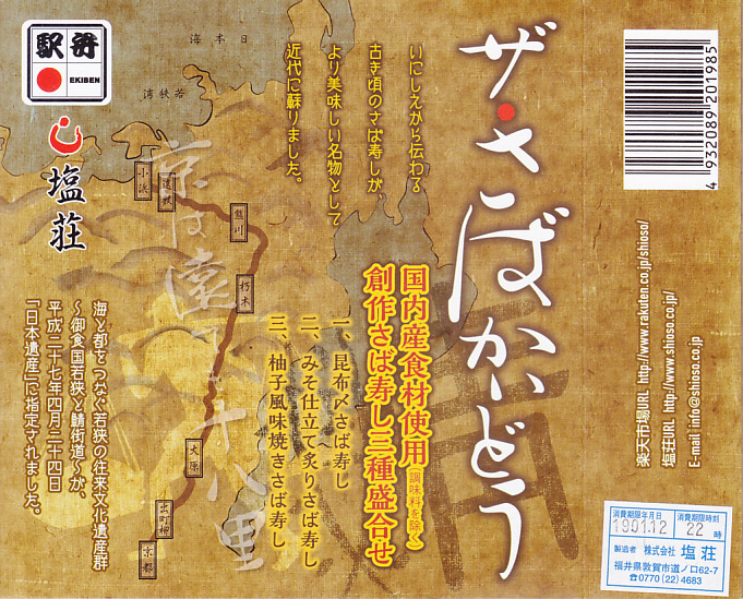 駅弁としては2004(平成16)年5月1日の発売というが、土産物や通販商品としてはその数か月前から出ていた模様。商品そのものは敦賀駅の人気駅弁「荘兵衛さんの鯖街道さばずし」と同じタイプだが、特に脂が乗っているという11月から12月頃の寒さばを、分厚く分厚く載せた贅沢な鯖棒寿司。2004年度のJR西日本の駅弁キャンペーン「駅弁の達人」の対象駅弁。価格は2004年の購入時で2,000円、2014年時点で2,100円、2019年時点で2,200円、2020年時点で2,500円。
