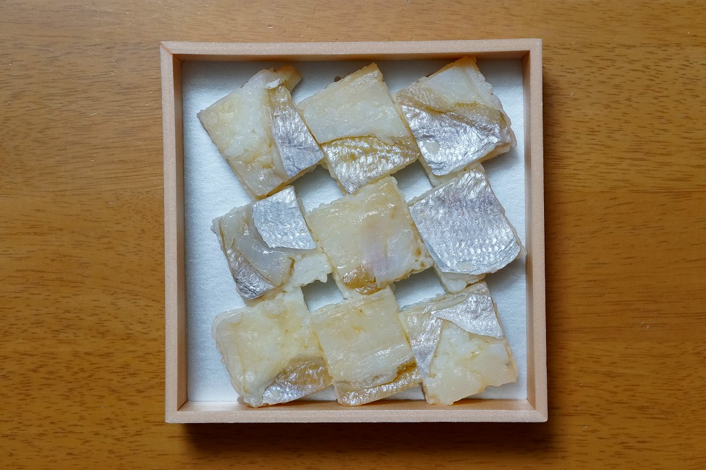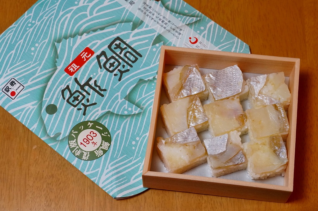 1900年代あるいは大正時代から販売されている、敦賀駅で伝統の駅弁。古くは「きすずし」や「きすたいずし」を名乗った時期がある。かつては経木でできていた、板紙に菱形の枠を貼り付けた容器に、立方体にカットした小鯛の押寿司を12個分並べる。ふんわりとしたタイの身と、程良い固さの酢飯が一体となり、口の中でしっかりと味と香りを出す実力派。価格は2010年時点で1,000円、2014年4月の消費税率改定で1,030円、2023年時点で1,080円。