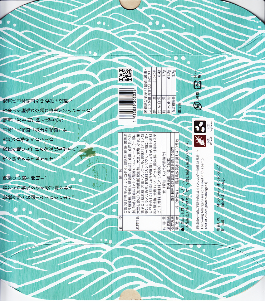 1980年代に使われたのではないかと思われる、昔の敦賀駅弁の箱。上記の2003年のものと、おおむね変わらない。