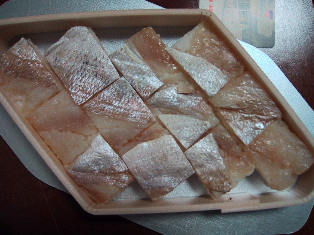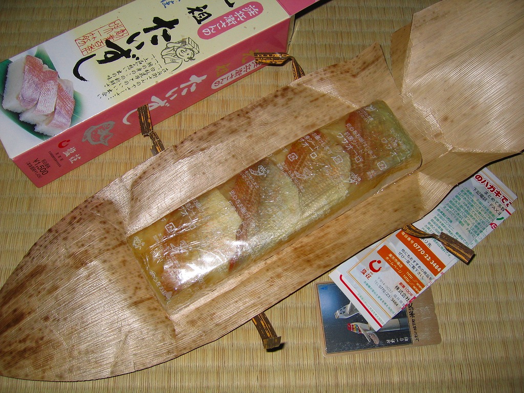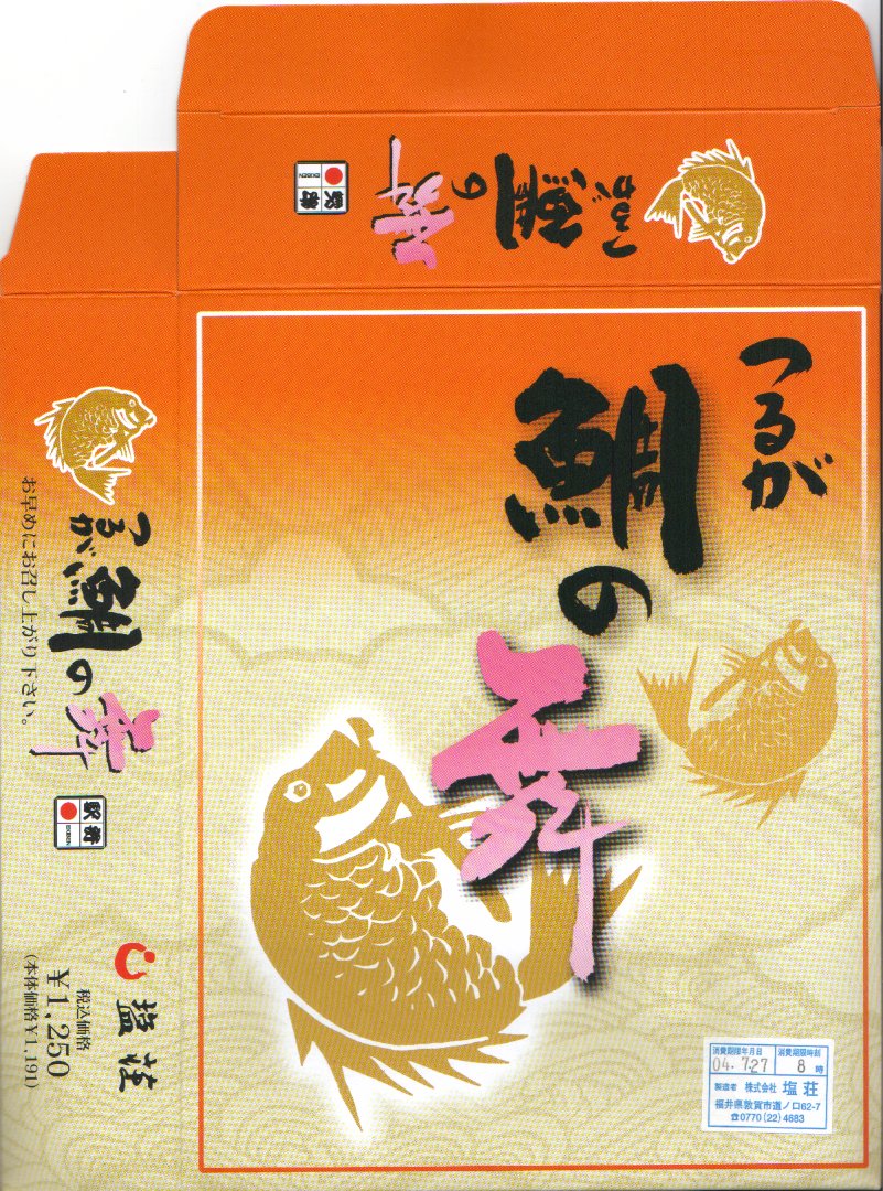 2004年7月26日に購入した、敦賀駅弁のボール紙製パッケージ。容器と中身と味は2013年のものと同じで、パッケージの絵柄が異なる。
