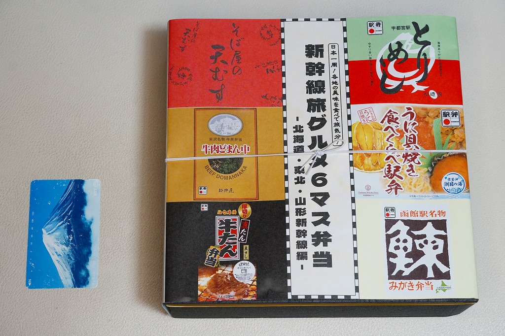 2025(令和7)年1月の京王百貨店の駅弁大会で販売。同大会の60回を記念し、新幹線の停車駅で販売している各地域の駅弁を6マスに詰めた弁当を実演販売した。これは東海道新幹線、上越・北陸新幹線、北海道・東北・山形新幹線、山陽・九州・西九州新幹線の4種類のうち「北海道・東北・山形新幹線編」で、東京駅「そば屋の天むす」、宇都宮駅「復刻とりめし」、米沢駅「牛肉どまん中」、福島駅「うに貝焼き食べくらべ駅弁」、仙台駅「厚切り真たん牛たん弁当」 、新函館北斗駅「鰊みがき弁当」の詰合せ。掛紙はその6種類の駅弁の絵柄の組合せで、大きな正方形の容器に6個のプラ製トレーを同じ大きさで詰め、それぞれの中身をミニサイズに収めた。ここでの筆頭は東京駅「そば屋の天むす」で、これを2個だけ詰めた。