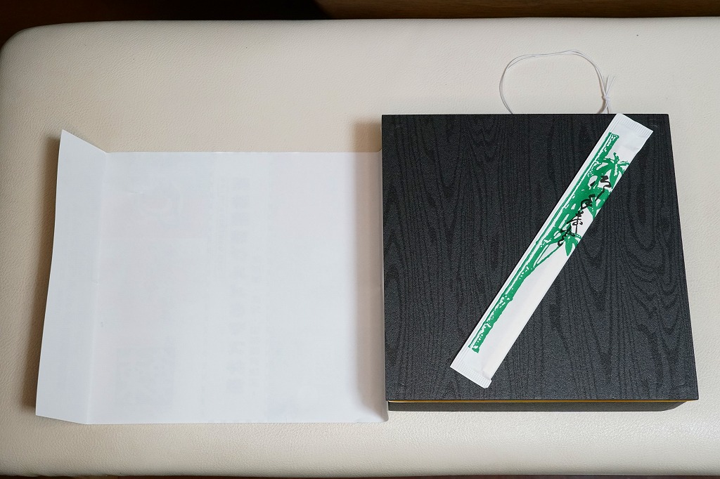 2014(平成26)年8月9日に購入した、小淵沢駅弁の包装紙。中身は上記の2016年のものと同じ。当時は包装が袋状でなく、薄い茶色の包装紙で包んでいた。