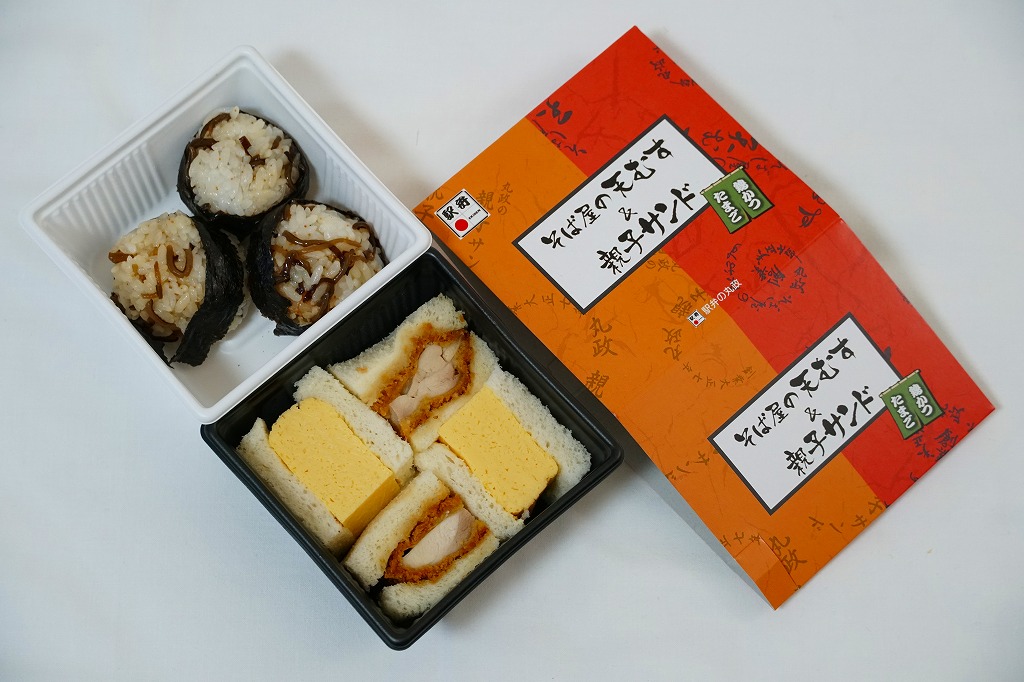 秋冬の駅弁大会シーズンに向けた、2023(令和5)年秋の新商品。既存の小淵沢駅弁「そば屋の天むす」「八ヶ岳高原たまごサンド」「甲州かつサンドとり」の組合せ。実在する天むすの袋と実在しない親子サンドの柄を持つスリーブに、天むす3個を収めた白いプラ容器と、鶏カツサンドとたまごサンドを2切れずつ収めた黒いプラ容器を、重ねてはめる。軽食の分量で3種の駅弁を楽しめるまとめ売り。駅で売られるかどうかは不明。