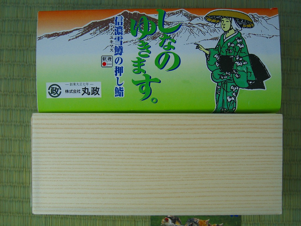 細長い長方形の容器に、割り箸とマスの押寿司を詰め、ふたをして掛紙で巻いてセロテープで留める。見た目どおり淡泊な味。白く透き通るマスの身に載せた白昆布と、中に挟んだシソの葉が、風味を出さずにクセを消す役割を果たすか。駄洒落系でも元気甲斐と同様、商品そのものに実力がある。2014年時点で現存しない模様。