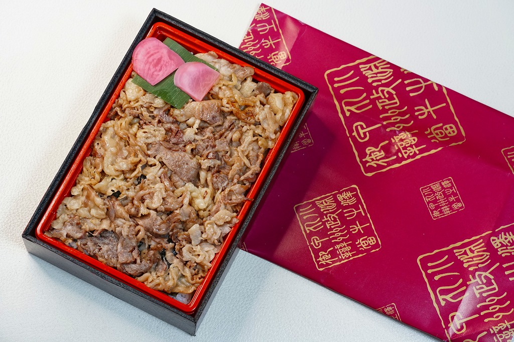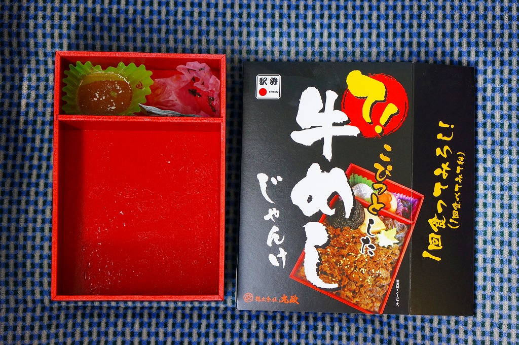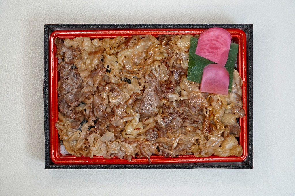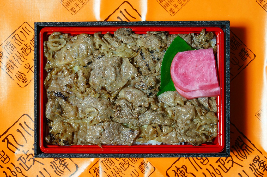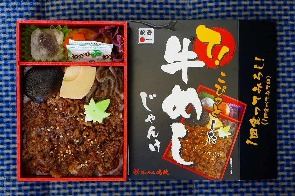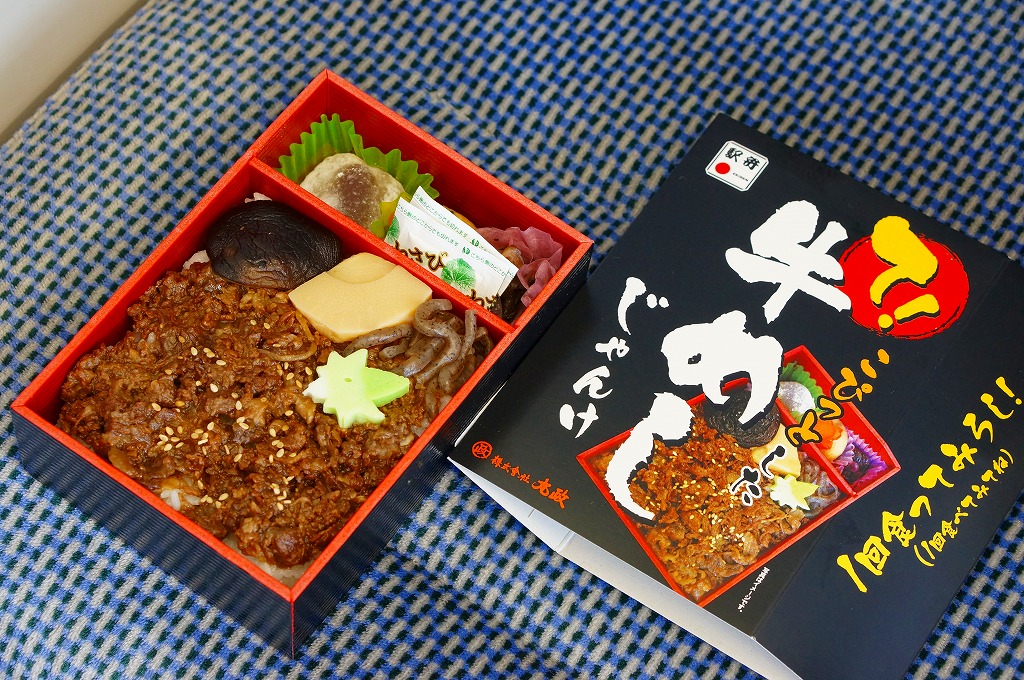 2018(平成30)年1月と2019(平成31)年1月の京王百貨店の駅弁大会で輸送販売。その他の場所での販売を確認できていない。白御飯を牛肉で覆い、煮物と山菜と漬物を添え、透明なふたをして、商品名を描くスリーブに収める点までは、標準的な牛肉駅弁。牛丼タイプの焼肉がたっぷり、加えてビーフジャーキーが厚く柔らかくなったような棒肉かステーキのカットかが4本載り、肉の多量を感じる。常温で脂が白く浮く点も含め、力強いB級グルメ。駅弁大会以外の場所で売られたかどうかは定かでない。