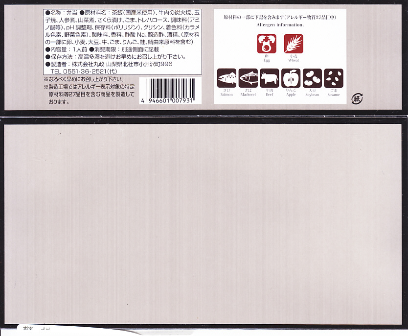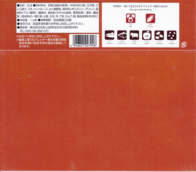 2015(平成27)年秋の新作駅弁で、同年10月のJR東日本の駅弁キャンペーン「駅弁味の陣2015」にエントリー。硬くて黒いプラ製の円形の容器に白御飯を詰め、錦糸卵と牛焼肉で覆い、「あつみかぶ酢」を添える。中身はこれだけの、シンプルな駅弁。ボール紙枠の見本写真とは美しさと肉の分量がまるで違う寂しい中身の一方で、駅弁味の陣の応募サイトと思われるQRコードで宣伝に勤しみ、催事向けなのだろうなと感じた。肉そのもの味は、焼きが香り良好。2017年までの販売か。