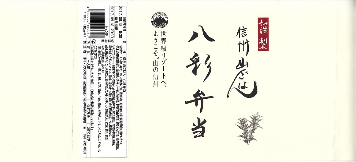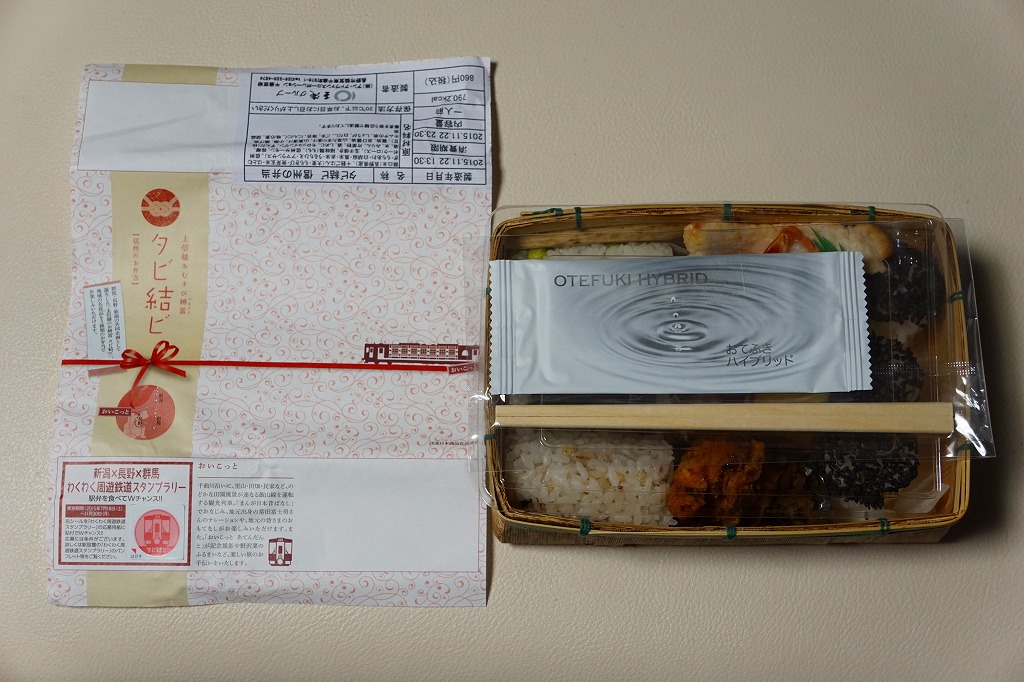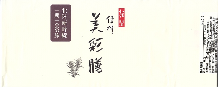JR東日本の新潟・長野・高崎の3支社合同の販売促進企画の一環で、2015(平成27)年7月18日から11月30日まで、新潟県の上越妙高駅、長野県の長野駅、群馬県の高崎駅で、同じ名前と容器と価格に異なる内容で販売される期間限定駅弁。これは長野駅版。