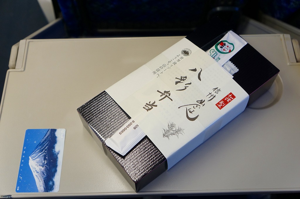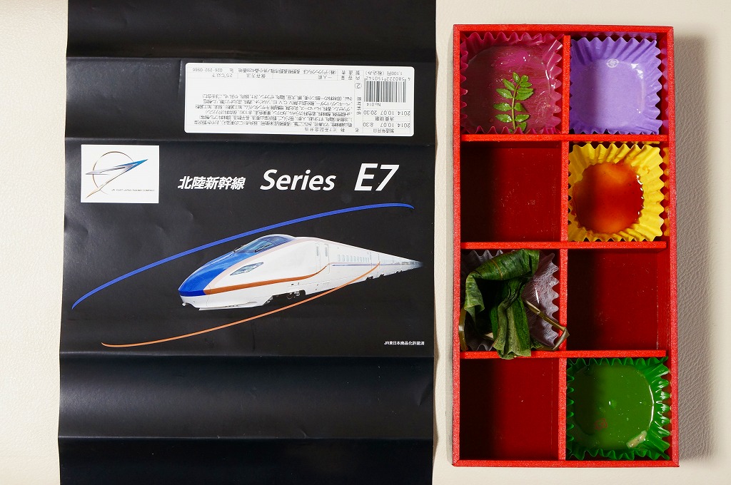 北陸新幹線向けE7系新幹線電車の運行を記念し、2014(平成26)年3月14日から2015(平成27)年3月13日まで販売。黒い掛紙には、その名と電車の写真とロゴマークのみを記す。8区画の中身は、野沢菜のミニおやき、姫だんご、マス寿司、治部煮、はちく竹煮、きのこ御飯、豚角煮、野沢菜わさび漬、ナガイモ酢漬。添付のしおりで、新幹線が2015年の春に開業予定であることと、長野と上越妙高(新潟)と富山と金沢の内容を取り入れたことが分かる。