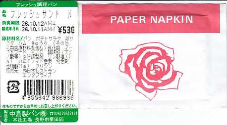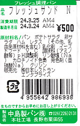 上記の商品「フレッシュサンドN」の、2012(平成24)年3月時点での姿で、やはり長野新幹線の車内販売で買ったもの。価格と野菜に違いがあるが、ほぼ変わらない。