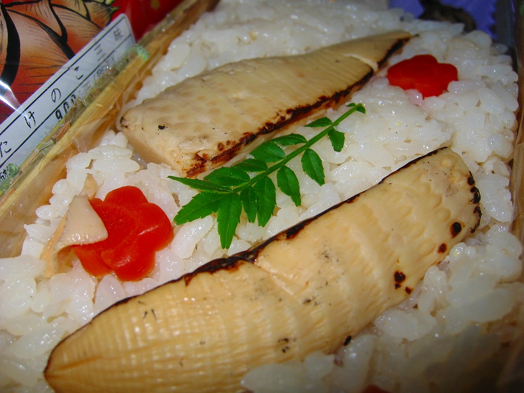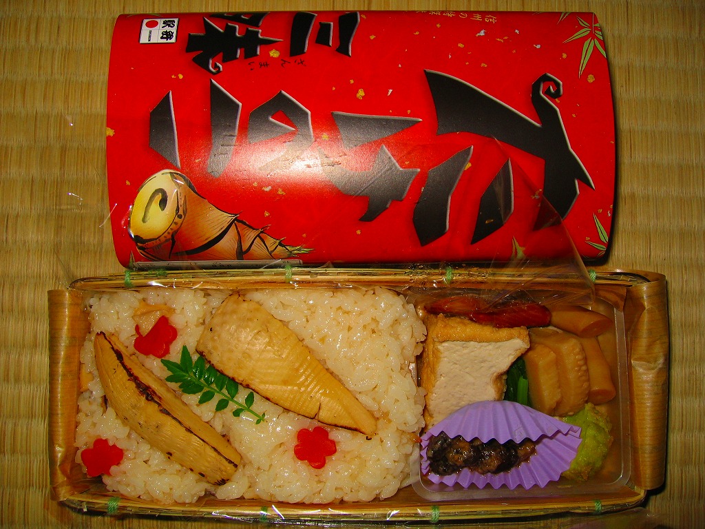 とても淡泊な風味に物足りなさを感じるか好ましさを感じるか。類例に乏しい個性と雰囲気の良さに駅弁らしさを演じる。タケノコよりも醤油豆を求めてこれを買う人もいるそうな。1月から8月までの販売。