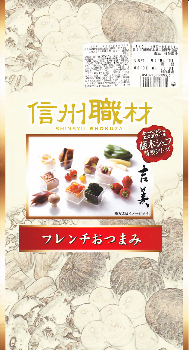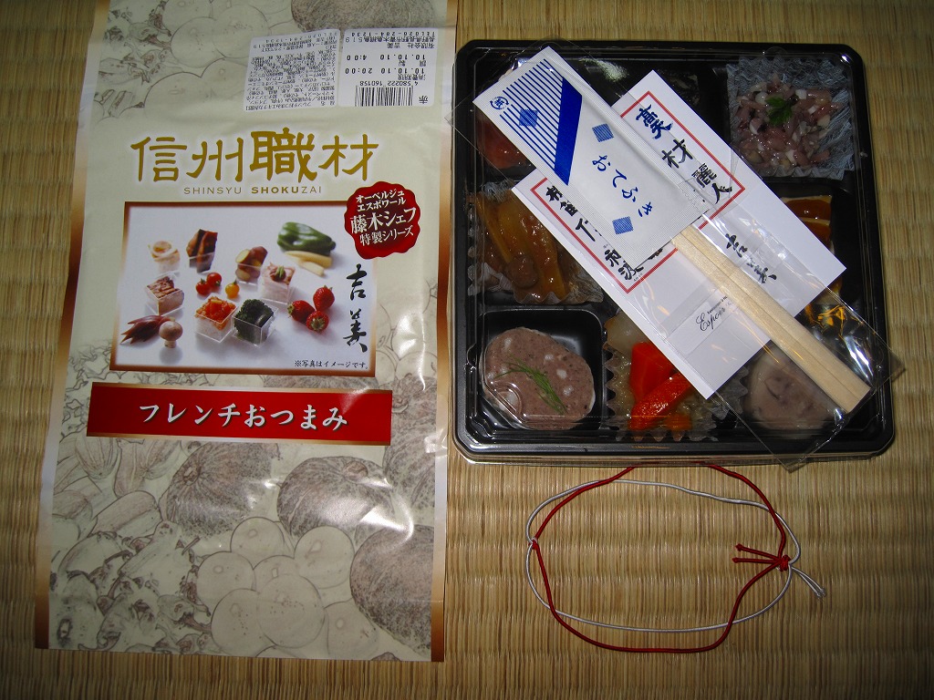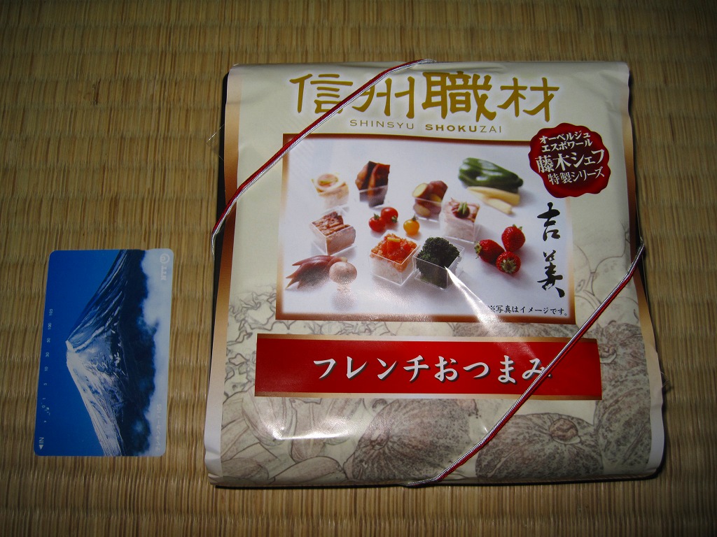 駅弁の名前のとおり、ビールではなくワインに合うべき9区画のおつまみであり、長野駅弁で見たゆで卵と前者に入る焼鮭でようやく駅弁を思い出すもの。今までの長野駅弁は少々野暮ったいところがあったが、この路線がヒットすればリゾートや高原の地域性が結び付くと思った。調製元の破産により、2012年3月30日までに終売。