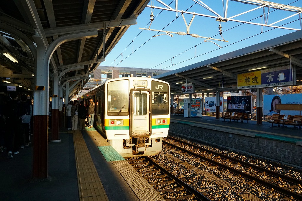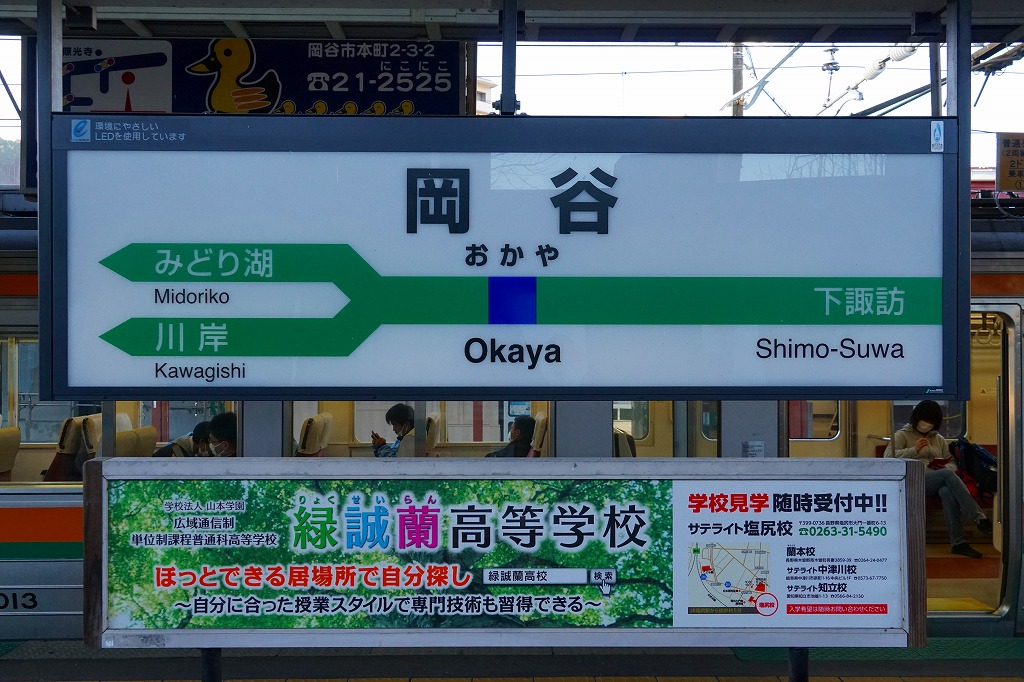 新宿駅から特急列車で約2時間半。岡谷市は長野県の真ん中に位置する、人口約5万人の工業都市。諏訪湖に面したウナギと味噌の街でもある。駅弁は国鉄時代からの駅弁屋が2001(平成13)年に撤退、以後は2013(平成25)年頃まで塩尻駅の駅弁が売られたり、街おこしのウナギ弁当が売られたりしたが、今は何もない。1905(明治38)年11月25日開業、長野県岡谷市本町一丁目。