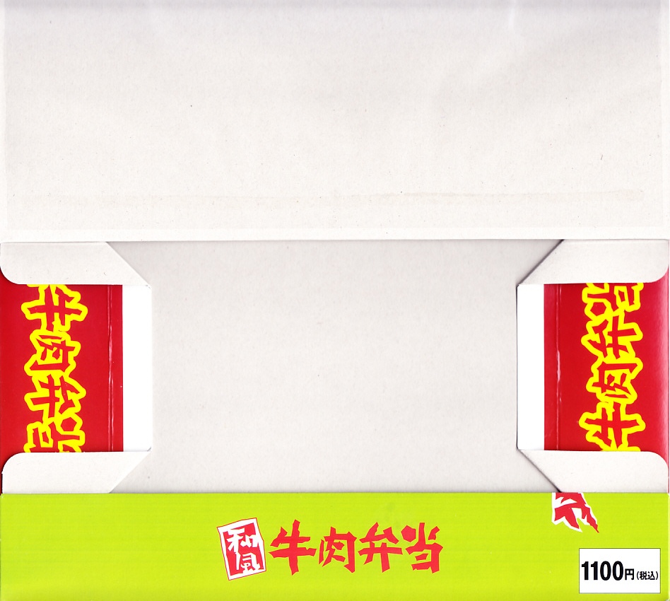 塩尻駅で平成時代の発売だろうか。白樺や牧場の風景を描いた専用の紙箱に、白いプラ製トレーを使い、日の丸御飯、レタスときゅうりと果物、フライドポテト、煮玉子、牛焼肉、ワインゼリー、漬物などを詰める。そんな見た目は、牛肉弁当というよりは牛肉入り幕の内駅弁。柔らかく脂身豊かな牛肉煮は醤油風味で、生野菜とフルーツが入り、駅弁の名前を表す。価格は2008年時点で950円、2014年4月の消費税率改定で980円、2021年時点で1,100円。