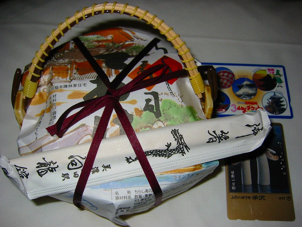 手桶型の美濃焼容器に木製のふたをして、掛紙をかけて紙ひもでしばる。中身は酢飯の上に海老、タコ、うなぎ、玉子焼、椎茸、キュウリなどを載せるもの。ちらし寿司にしては具が豪華で容器にも凝っているのに価格は千円以下と、お買い得な感じ。ただしふらりと駅に立ち寄っただけでは滅多に手に入らないようで、購入は予約か駅弁大会で。価格は2004年の購入時で950円、2015年時点で1,000円。調製元の撤退により2019年5月限りで終売。