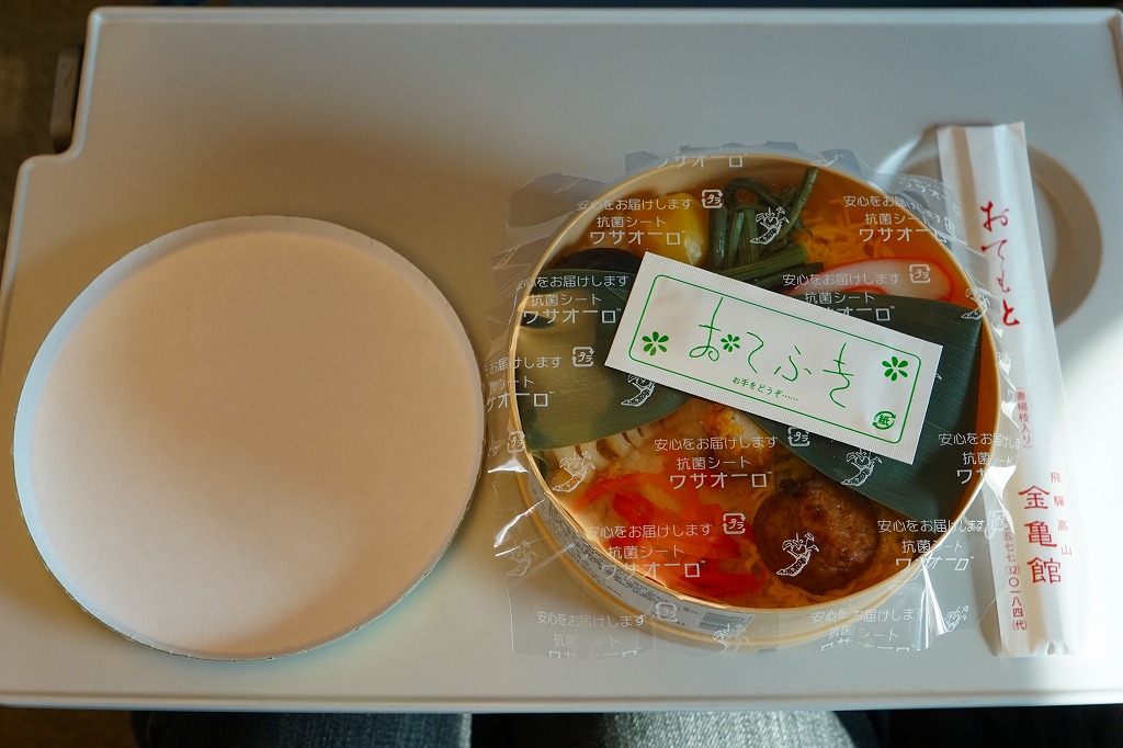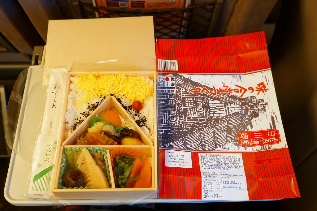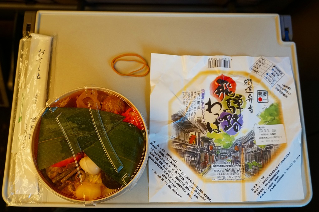 経木折で落ち着いた「飛騨べんとう」よりは賑やかにされた印象も、令和の時代に調製できる弁当はこうなるのだろう。価格は2008年のリニューアル時で1,000円、2014年4月の消費税率改定で1,030円、2020年時点で1,050円、2023年時点で1,150円、2024年時点で1,200円。