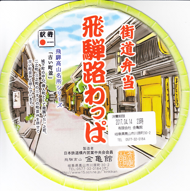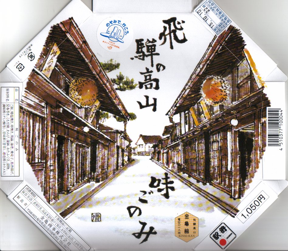 経木枠の正八角形の容器に、高山の古い街並みを描いたボール紙のふたをかける。中身は俵飯に鯖塩焼・蒲鉾・卵焼きに海老や鶏唐揚にこもどうふやわらびなど、つまり正統な幕の内駅弁。中身のグレードの割に価格が高過ぎると感じた。また、これは駅弁屋から見れば仕方がないが、パッケージに高山を通らない新幹線のぞみ号の、高山と関係ない品川駅開業のシールが貼られていてデザインを害しているのは残念。価格は2003年の購入時で1,050円、2014年時点で1,100円、2023年時点で1,200円、2024年時点で1,300円。