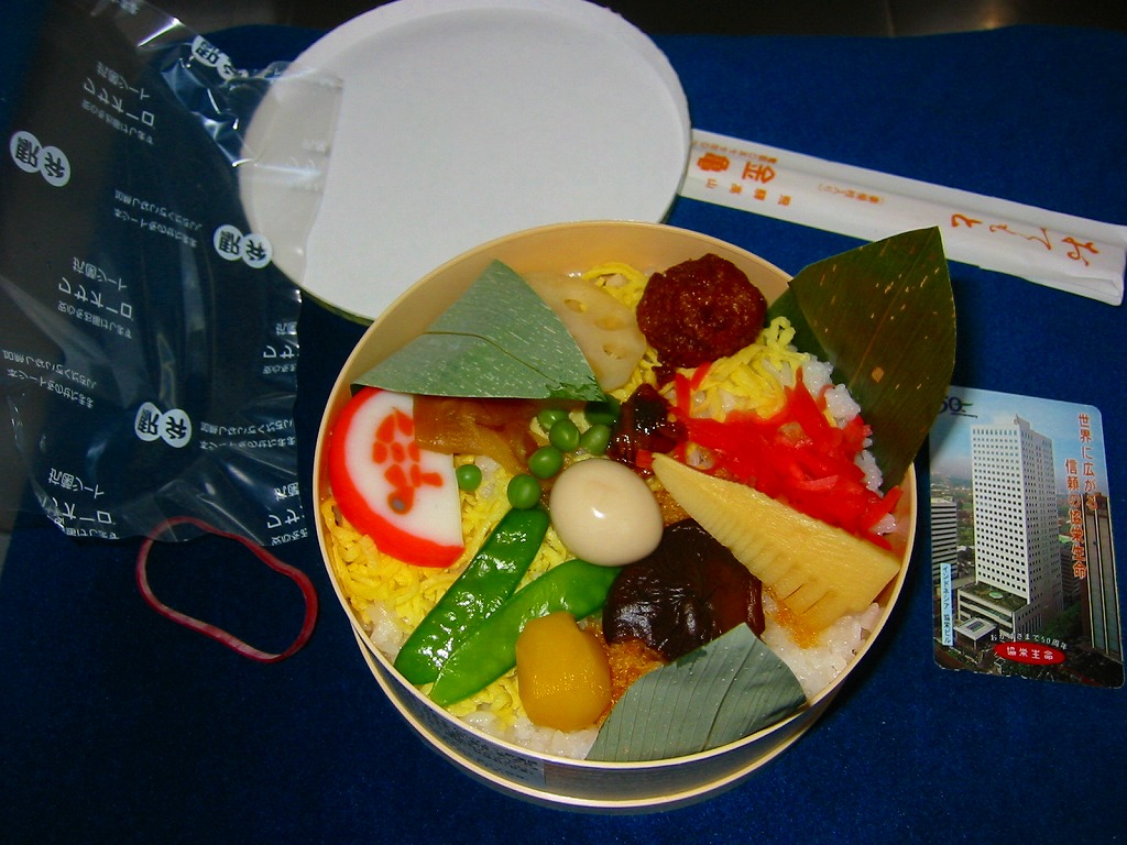 底に通気の穴があいた、上げ底で円形の硬いプラ容器に、透明なふたをして、飛騨高山名所シリーズとして「古い町並」を描いた掛紙で包む。この容器に笹の葉を敷き、酢飯を詰め、錦糸卵、肉団子、かまぼこ、焼鳥、うずら玉子、タケノコやシイタケなどの煮物、山菜、くり、紅生姜などで覆う。容器の構造やおかずの構成で、駅弁ではありがちのようで他になさそうな丼もの。価格は2003年時点で850円、2014年4月の消費税率改定で880円、2020年時点で900円、2023年時点で1,080円、2024年時点で1,150円。