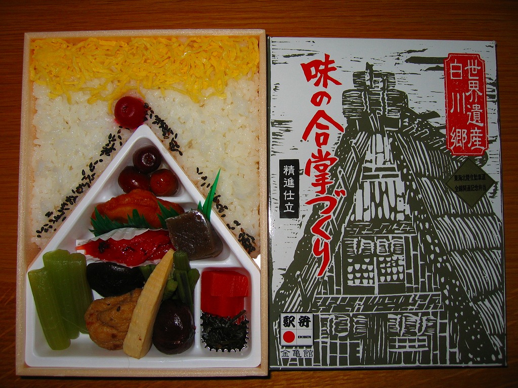 この駅弁の発売時には、そのコンセプトとデザインが絶賛されたという。今でこそ朴葉寿司などの有名駅弁に隠れがちではあるが、白川郷が世界遺産に指定され合掌造が全世界に発信される現在でこそ輝いているはず。43年間変わらず「国鉄」の文字まである掛紙に、「のぞみで、行こう。」という違和感のあるシールが貼らされている。2008年2月のリニューアルにより終売。