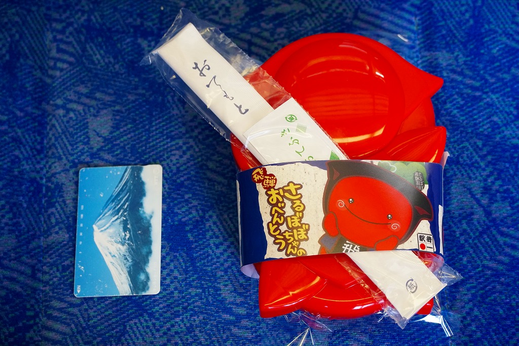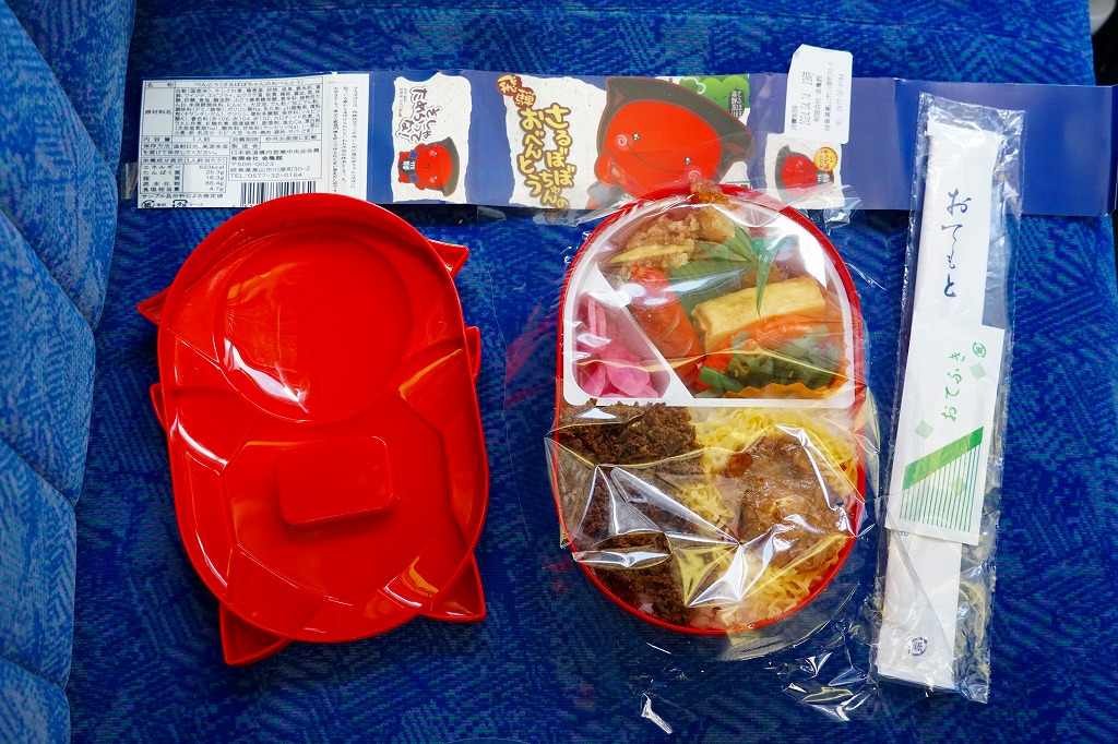 2006(平成18)年10月に発売。飛騨高山の郷土人形「さるぼぼ」型の赤いプラ製容器を使用、これに紙帯を巻いたりセロハンテープで留めて封とする。中身は白御飯の上に鶏そぼろと錦糸卵を敷いて焼き鳥3個を載せて、煮玉子や煮物に山菜などを添える、強いて言えば鶏親子飯。その分量や風味より容器のインパクトが大であり、選択基準はここに求めるべき。さるぼぼの駅弁立売ストラップが付いており、これを得るために買ってもよい。価格は2006年の発売時で1,050円、2014年4月の消費税率改定で1,080円、2022年時点で1,100円、2023年時点で1,200円。