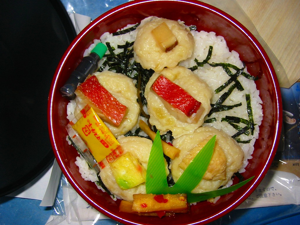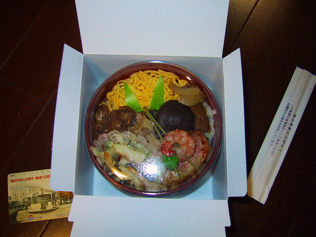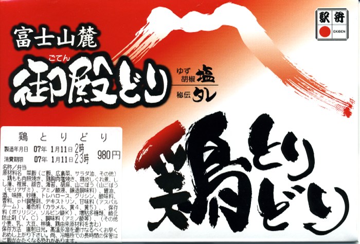 かなりユニークで味勝負の鶏飯。前月に訪問した小田原駅や熱海駅では実物も商品案内もなく、疑義駅弁かと思ったが、ネット上に現地での収穫報告があるため、単に私の運が悪かった模様。個人的に最近の小田原駅と熱海駅の駅弁は、催事場でしか買えなくなりつつある。2009年度以降は売られていない模様。