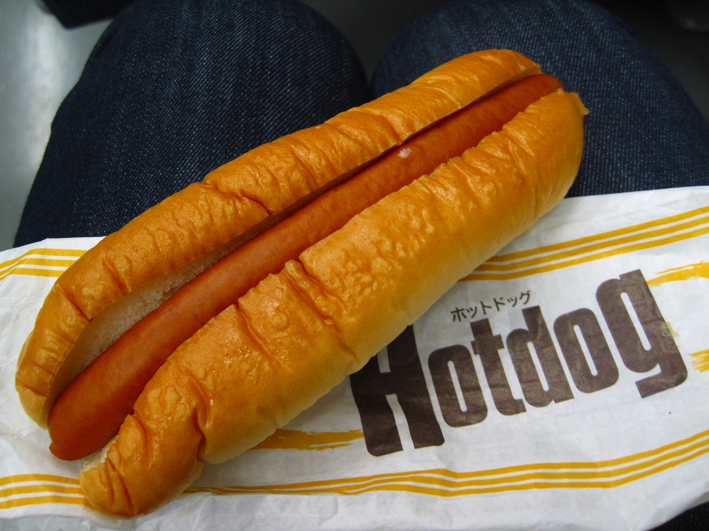 主に東海道本線の上り東京方面の列車が発着する、熱海駅の4・5番ホーム上で、駅弁とともに売られたホットドッグ。細長いロールパンにソーセージ1本を挟んで袋に詰めただけの、何のひねりもない安物のホットドッグ。駅構内でこういう商品が作られていることは珍しいと思い、購入してみた。屋台で買うタイプと同じく、アツアツの状態で手渡され、ケチャップかマスタードは好みでかける。熱海駅の駅弁屋でもある東華軒の社史には、1950(昭和25)年4月1日にホットドッグの販売を開始したとあるが、それ以来の歴史がある品物には見えない。現在は売られていない模様。
