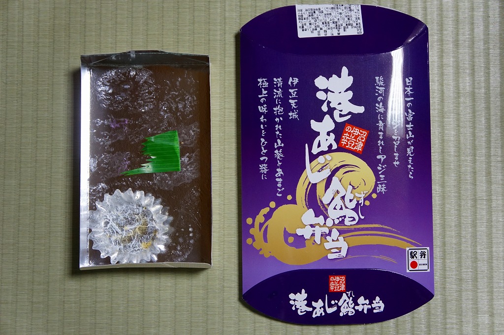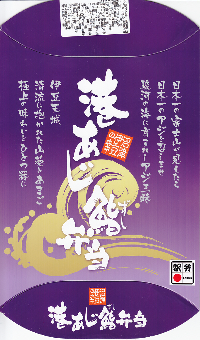 2016(平成28)年11月25日の熱海駅ビル「ラスカ熱海」オープンと同時に発売か。調製元は三島駅や沼津駅の駅弁屋だが、この商品は土休日に熱海駅で売られるという。三島駅や沼津駅で一番人気の駅弁「港あじ鮨」と、とてもよく似た名前とパッケージを使う。
