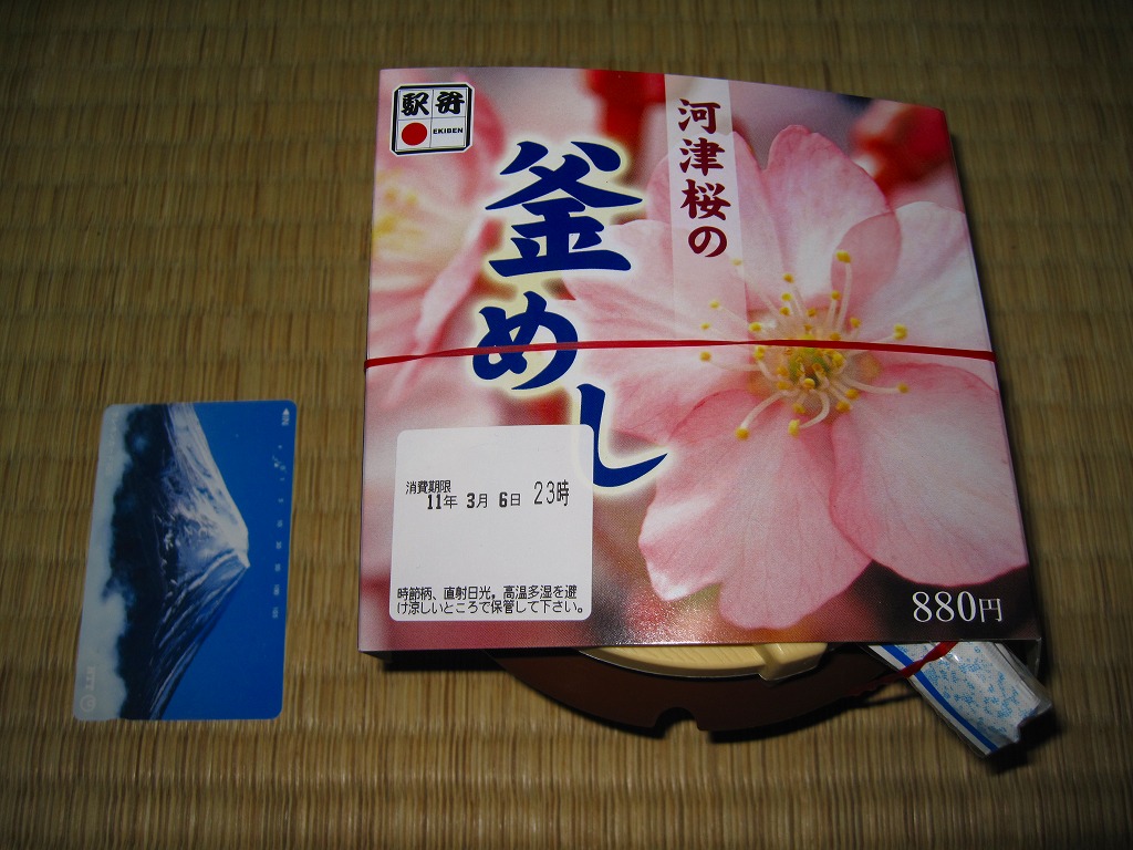 2011(平成23)年2月5日に熱海駅で発売。調製元の所在地が小田原であるため、日本レストランエンタプライズ(NRE)の駅弁大会では小田原駅の駅弁とされた。プラスティック製の釜型容器に桜の花のマクロ写真を印刷したボール紙をかける。中身は茶飯の上にキンメダイの酢漬け、サクラエビ煮、とりそぼろ、タケノコ煮、レンコン煮、菜の花煮、桜でんぶ、錦糸卵、桜花型の麩などを載せるもの。春と桜をたくさん詰めているが、見栄えや味はちょっとくすみがち。東華軒の味であるとりそぼろが、中身では最もうまかった。おそらく春季限定。2013年以降は販売されていない模様。