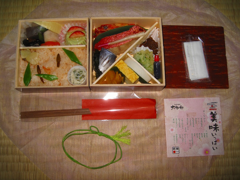 JR東日本横浜支社の観光キャンペーン「伊豆・湯河原温泉いっぱい花いっぱいキャンペーン」の開催に合わせて、2011(平成23)年1月1日から3月31日まで一日30個が、小田原、湯河原、熱海の各駅で販売された期間限定駅弁。調製元は確かに大船駅弁の大船軒であるが、同社はもはや日本レストランエンタプライズ(NRE)の1ブランドであるようで、東華軒のエリアの駅弁売店もNRE化が完了しているため、こんな売り方ができるようになってしまった。