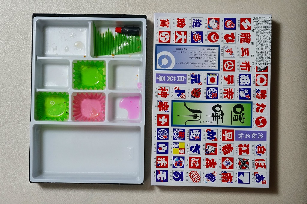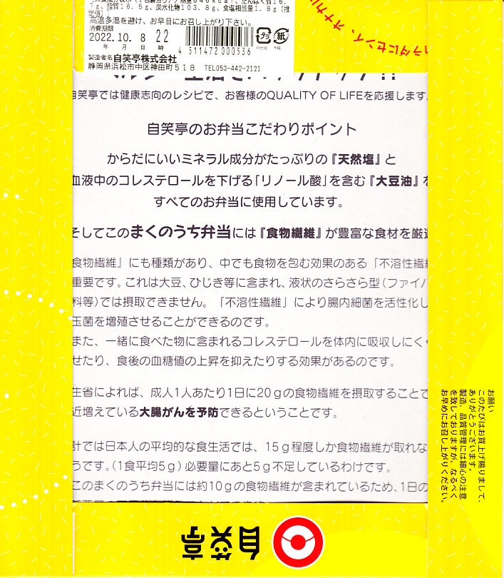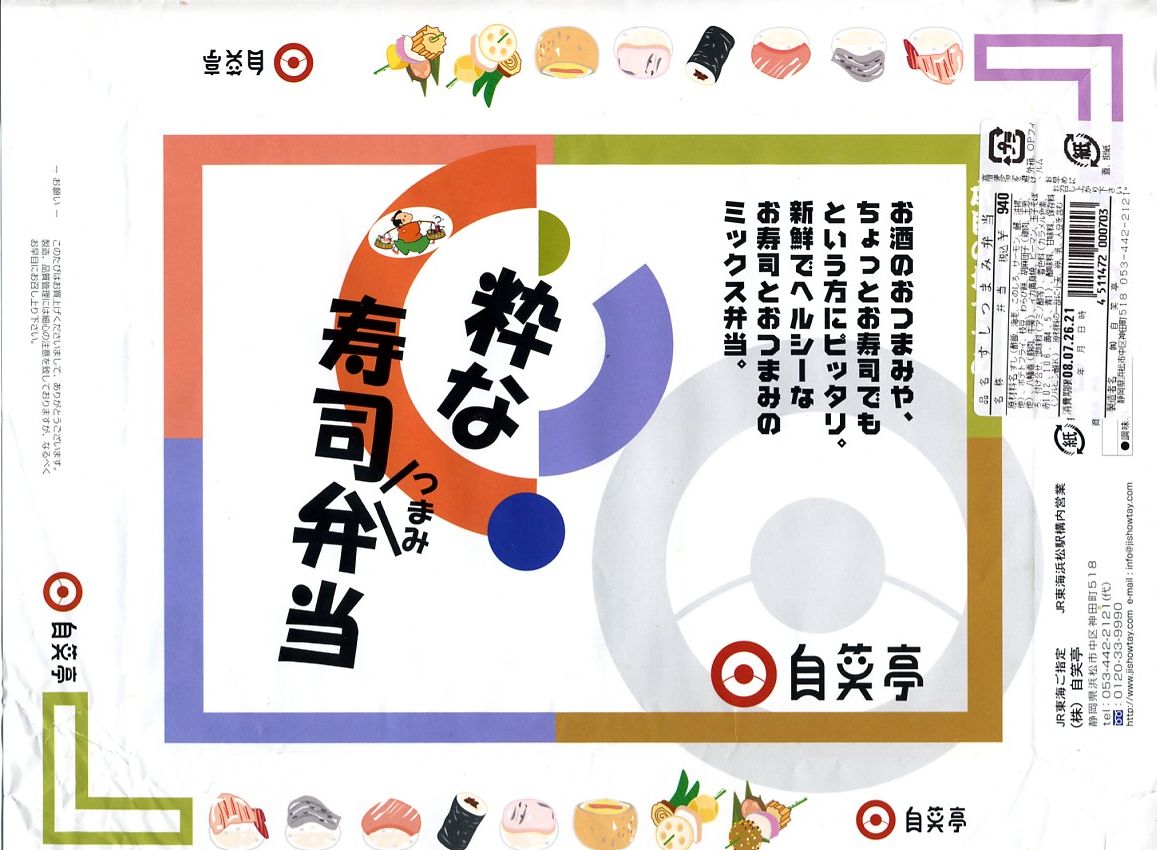 2003(平成15)年12月22日に購入した、浜松駅弁のふた。絵柄も容器も中身も、2022年のものと変わらない。