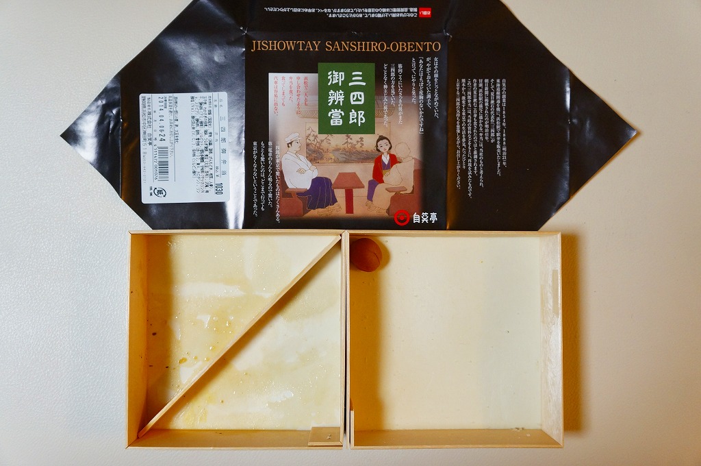 中身の見栄えは惜しいが、風味は並。分量もこんなもの。それより何より、こんな時代遅れの駅弁がいまだに売られ続け、買われ続けることは、ひとつの文化だと思う。もう一回り時代が進んだら、復刻掛紙でもかけてあげたい気がした。2011年までの販売か。