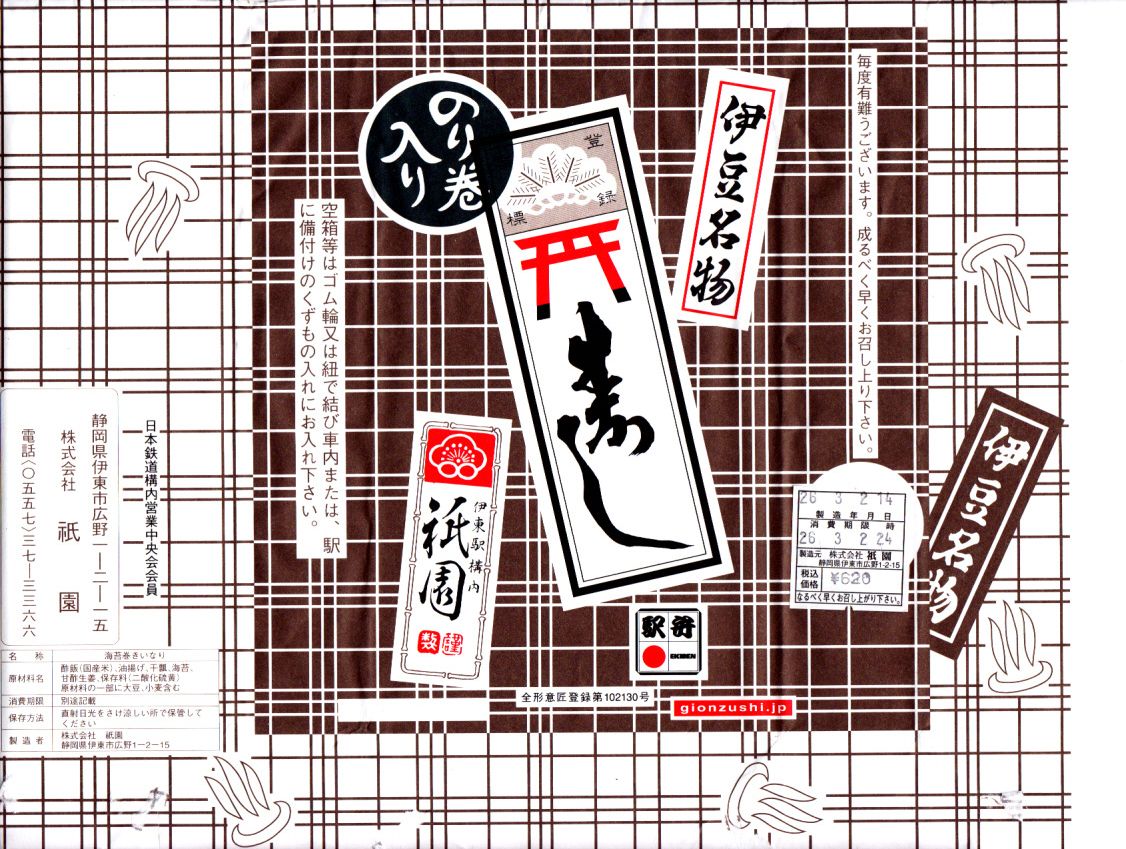 2014(平成26)年3月2日に購入した、伊東駅弁の包装紙。食品表示の増減を除き、下記の2003年のものや、上記の2022年のものと変わらない。中身も風味も同じ。