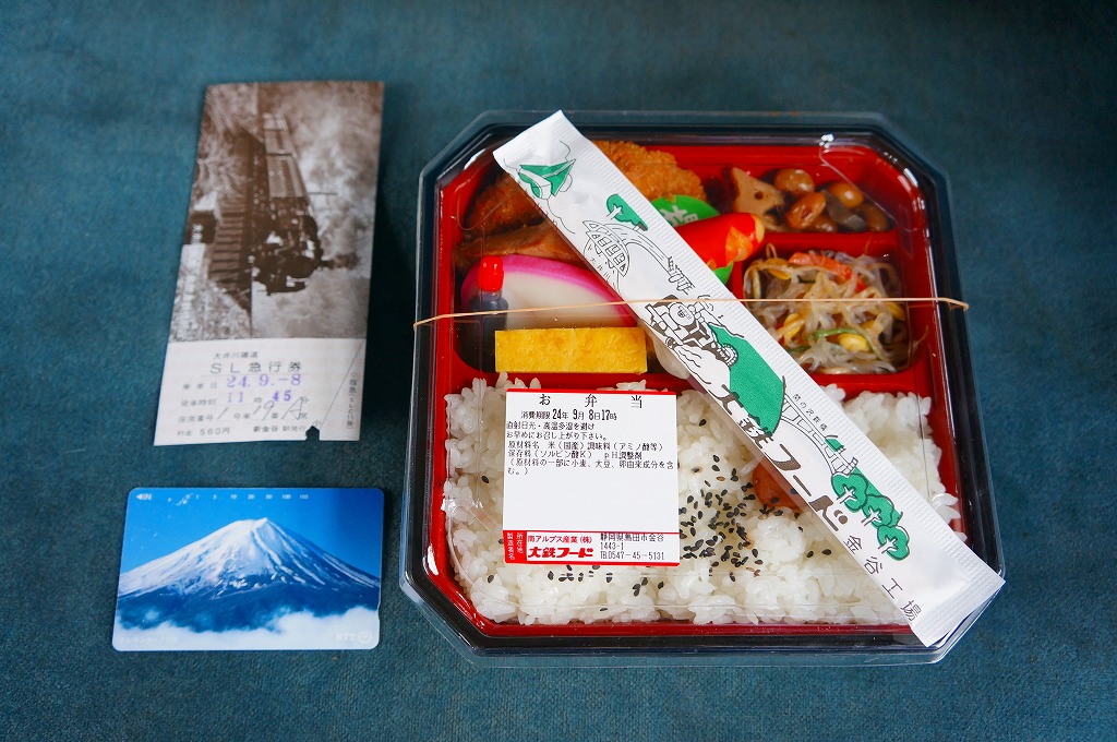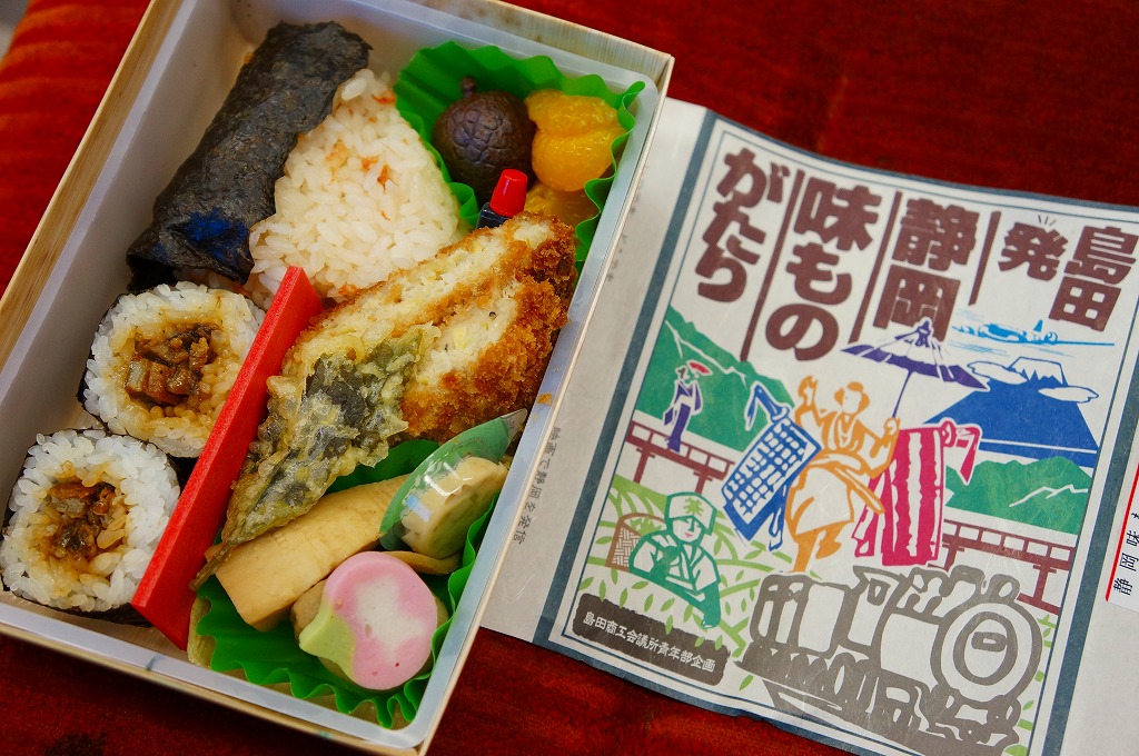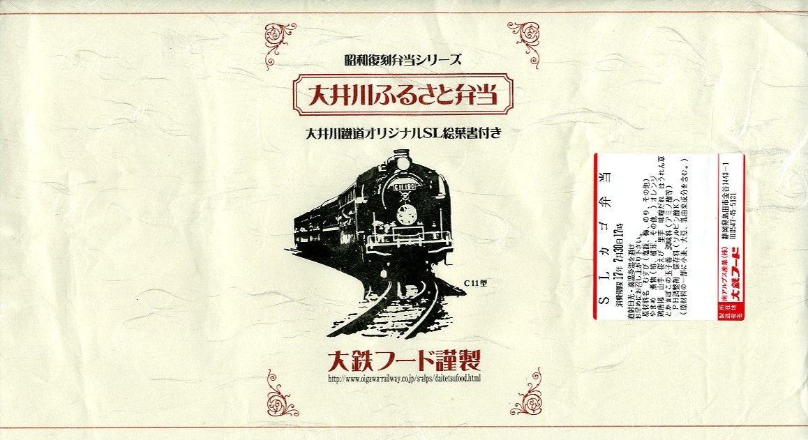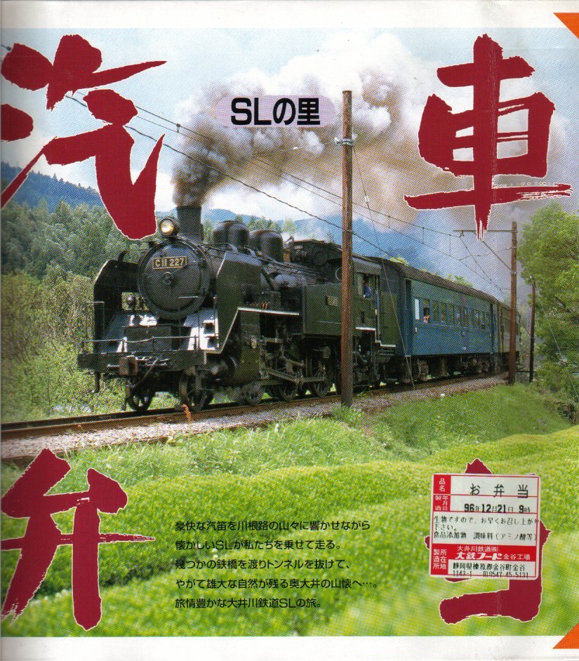2004(平成16)年度に発売。静岡の方言を記した竹皮編み柄のボール紙製容器に、SL列車の絵はがきを1枚添えて、SL列車の写真でデザインした掛紙を巻く。中身はおにぎり2個、ヤマメ甘露煮、タケノコやシイタケなどの煮物、サトイモ田楽、鶏唐揚、サクラエビ佃煮、ヤマイモ、オレンジなど。見た目どおりの味。この体裁はSL列車にも似合う。価格は2012年時点でおそらく950円、2013年時点で缶茶付きで1,050円、2014年4月の消費税率改定で1,100円へ値上げ、2017年時点で本体のみ1,080円、2019年時点で1,150円、2022年4月から1,200円。