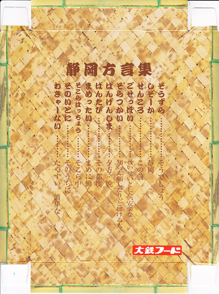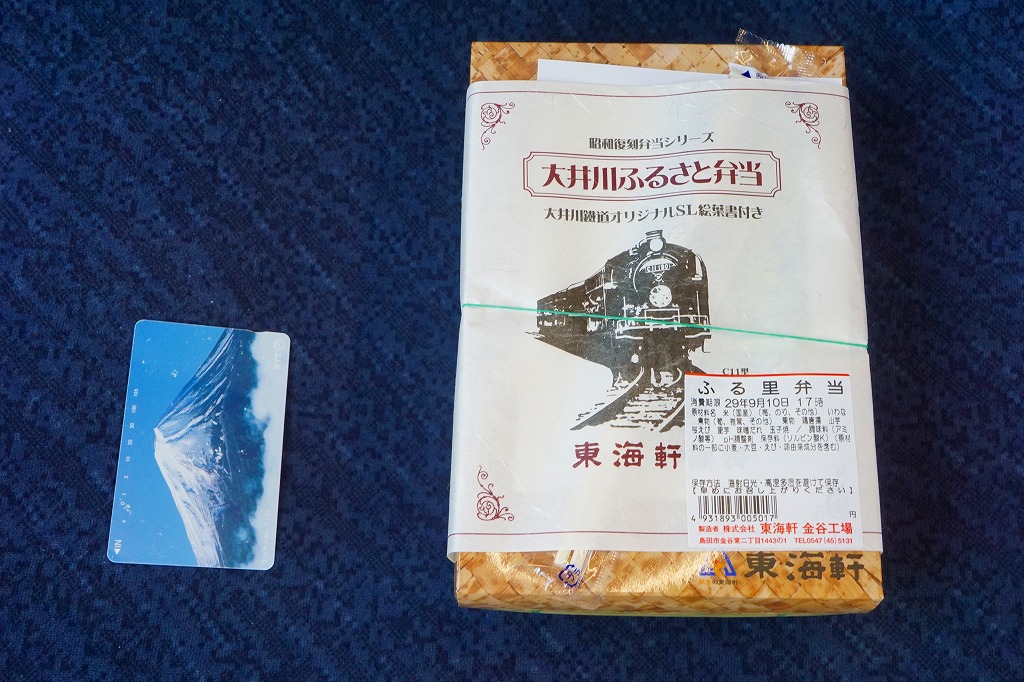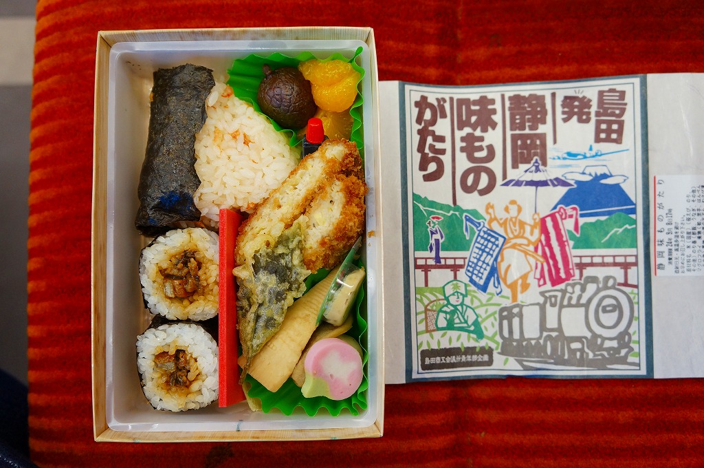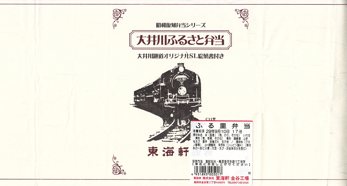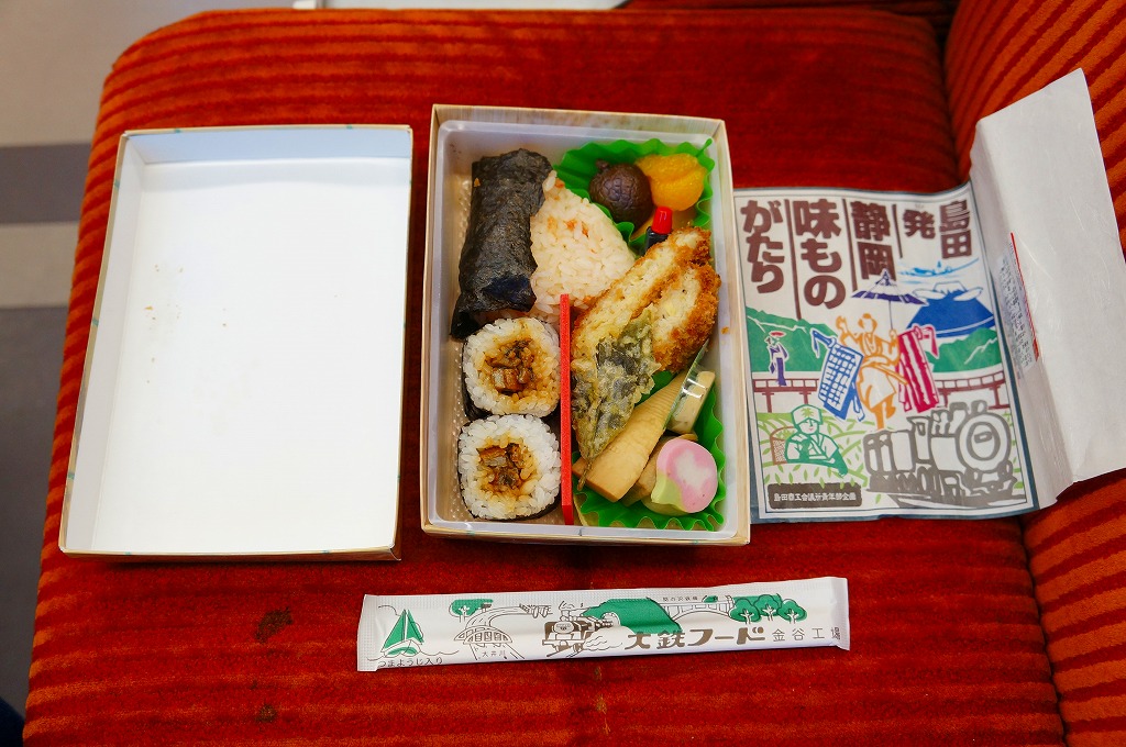 2004(平成16)年度に発売。静岡の方言を記した竹皮編み柄のボール紙製容器に、SL列車の絵はがきを1枚添えて、SL列車の写真でデザインした掛紙を巻く。中身はおにぎり2個、ヤマメ甘露煮、タケノコやシイタケなどの煮物、サトイモ田楽、鶏唐揚、サクラエビ佃煮、ヤマイモ、オレンジなど。見た目どおりの味。この体裁はSL列車にも似合う。価格は2012年時点でおそらく950円、2013年時点で缶茶付きで1,050円、2014年4月の消費税率改定で1,100円へ値上げ、2017年時点で本体のみ1,080円、2019年時点で1,150円、2022年4月から1,200円。
