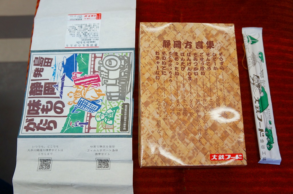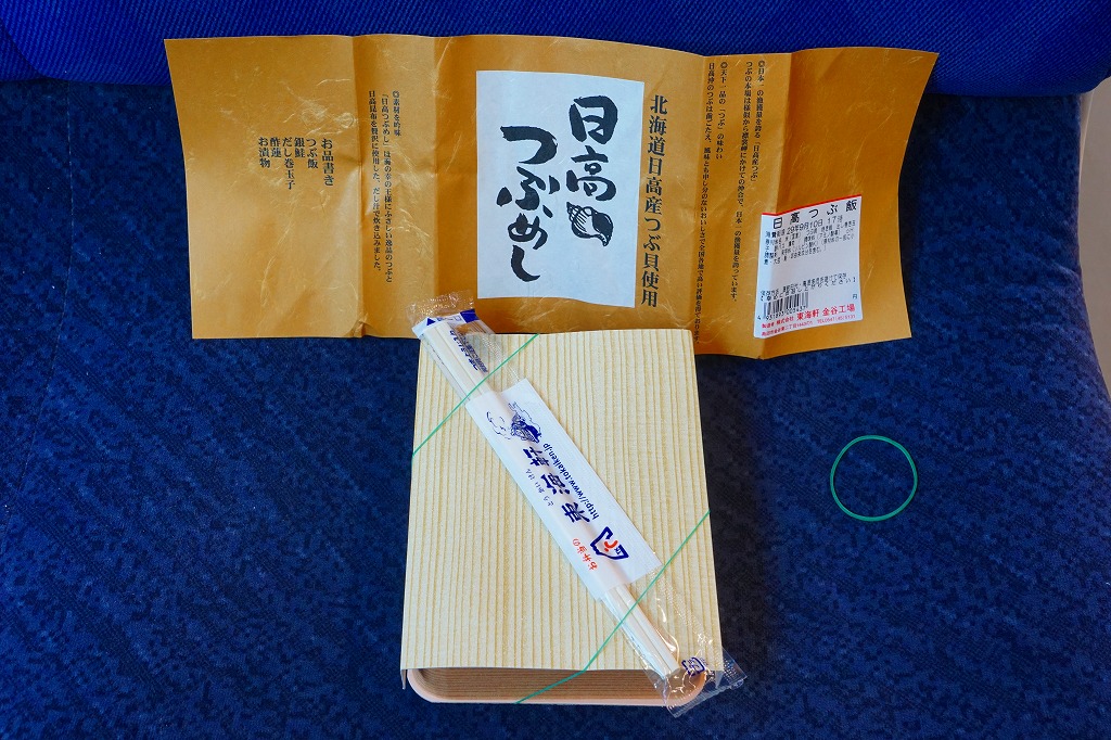 その北海道の日高つぶめしの調製元と、大井川鐵道の親会社は、同じ会社。公式な発表はないが、北海道日高の弁当と同じようなものが大井川鐵道で売られるのは、これが縁なのではないかと考えている。こちらの調製元は大鉄フード改め東海軒大鉄フード改め東海軒金谷工場で、さすがにツブ貝の量は北海道の半分ほど。