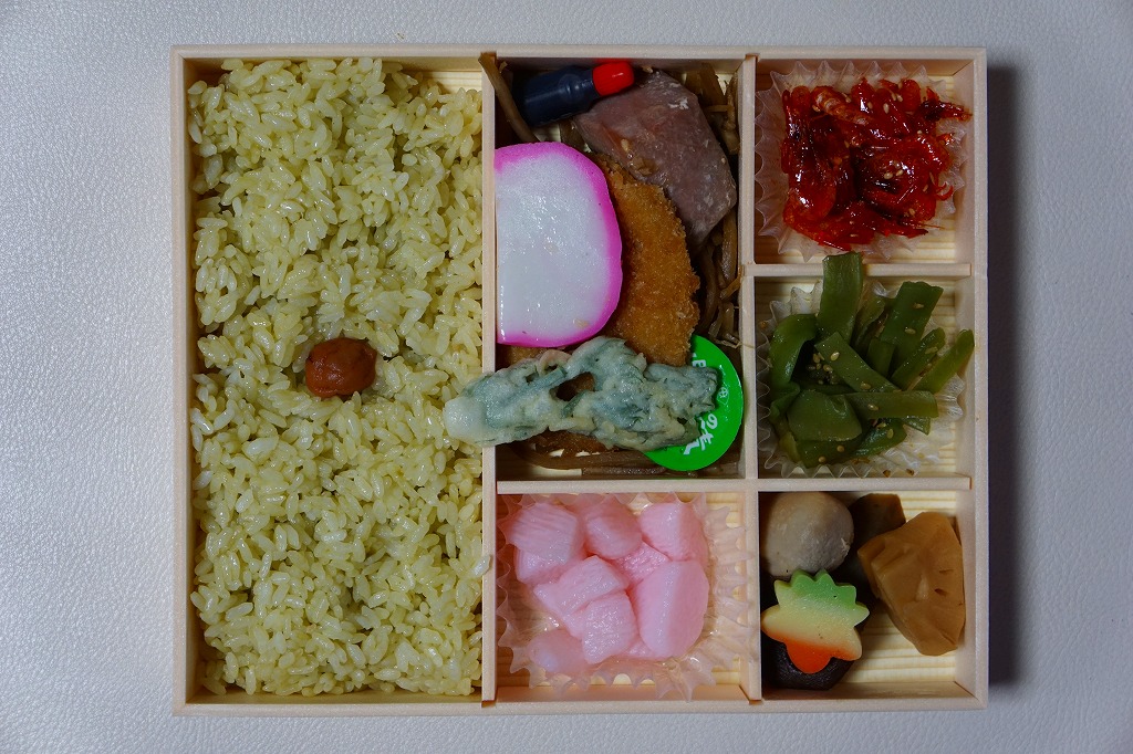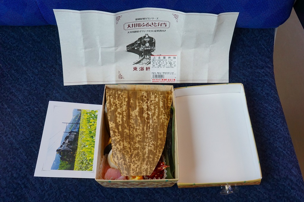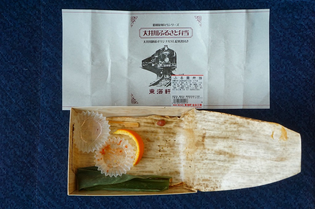 2012(平成24)年7月に、夏休み期間限定に予約販売する弁当として発売か。市販の仕出し弁当向けボール紙製容器をそのまま使用、中に詰めた9区画のプラ製トレーに、のり、ふりかけ、五目っぽい三色の白飯、サクラエビ佃煮と玉子焼、山里の天ぷらという揚げ物、かまぼことマグロ照焼とわさび漬、鶏唐揚と黒はんぺん揚げ、サトイモやタケノコなどの煮物、オレンジとさくらんぼを詰める。駅弁というよりはむしろ、SL列車に乗りに来る客などの、団体向け仕出し弁当という雰囲気。価格は2012年の発売時で1,150円、2014年時点で1,200円、2019年時点で1,250円、2022年4月から1,300円。