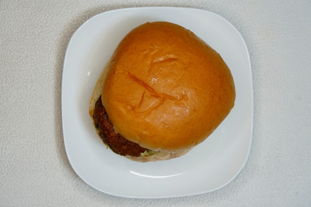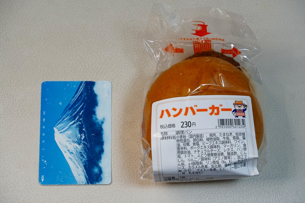 静岡駅のキヨスク系のコンビニや土産物店で売られていた、2種類のハンバーガーのうちひとつ。牛でも豚でもなく鶏肉のハンバーグを、真っ黒のソース漬けにしてレタスとともにバンズで挟み、透明な袋に詰める。上記のまぐろバーガーと違い、こちらは日本全国のコンビニのサンド・おにぎりコーナーで買えるハンバーガーと、何ら変わらない。調製元は静岡県清水で1941年に創業した、学校給食を主力とするパン製造業者。静岡の他駅のキヨスクでも買えるかもしれない。